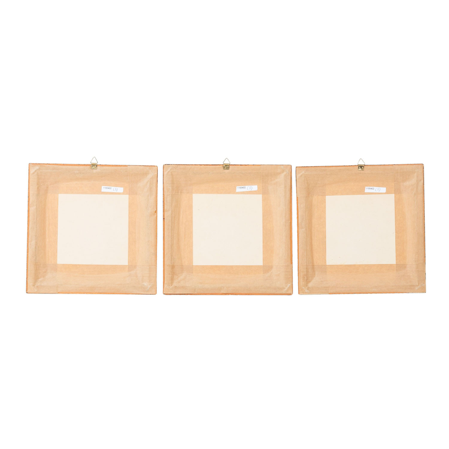 einheitlich gerahmt in drei quadratischen Rähmchen (18x17,5 cm), besch.