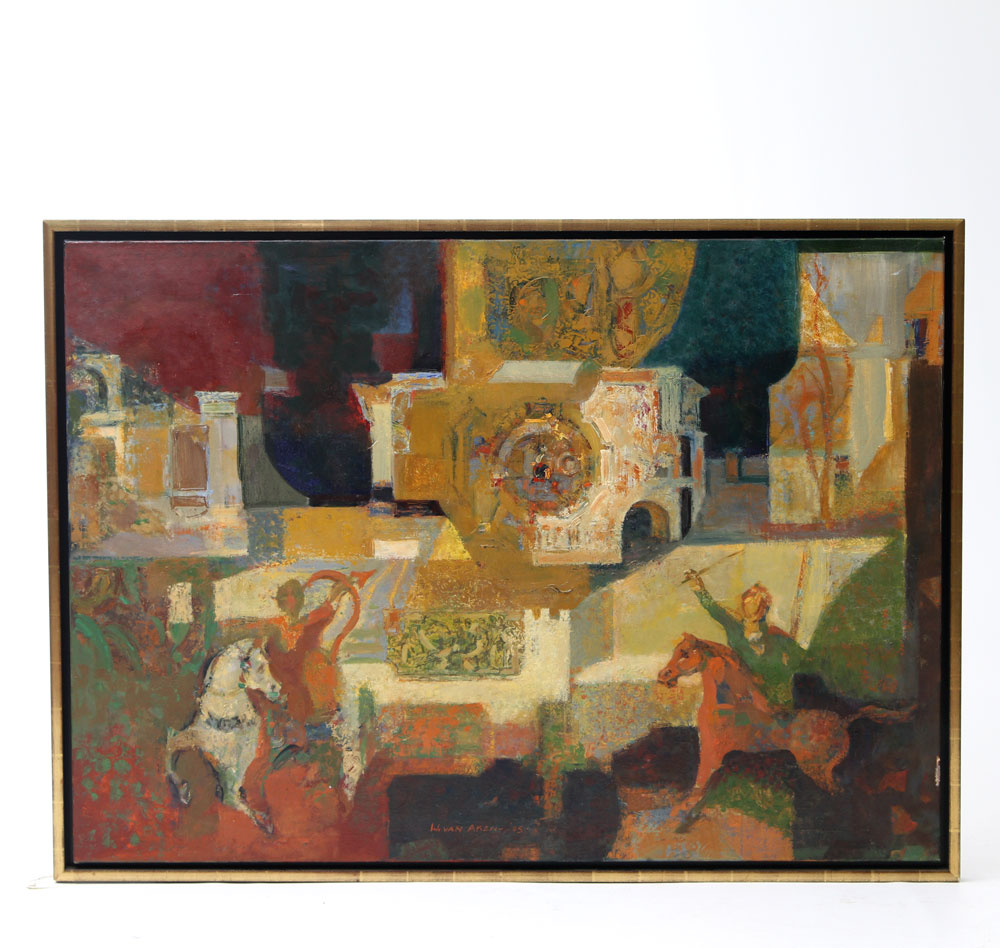AKEN, WIM VAN (1933-2015): "Mystiek Conflict/Mythologischer Konflikt (Stilleben)", 2005. Öl/Lwd., u. mitt. sig. u. dat., 100x140 cm, gerahmt (. min. besch.), abgebildet in: C. Denninger: Wim van Aken, 2008, S. 128/129.