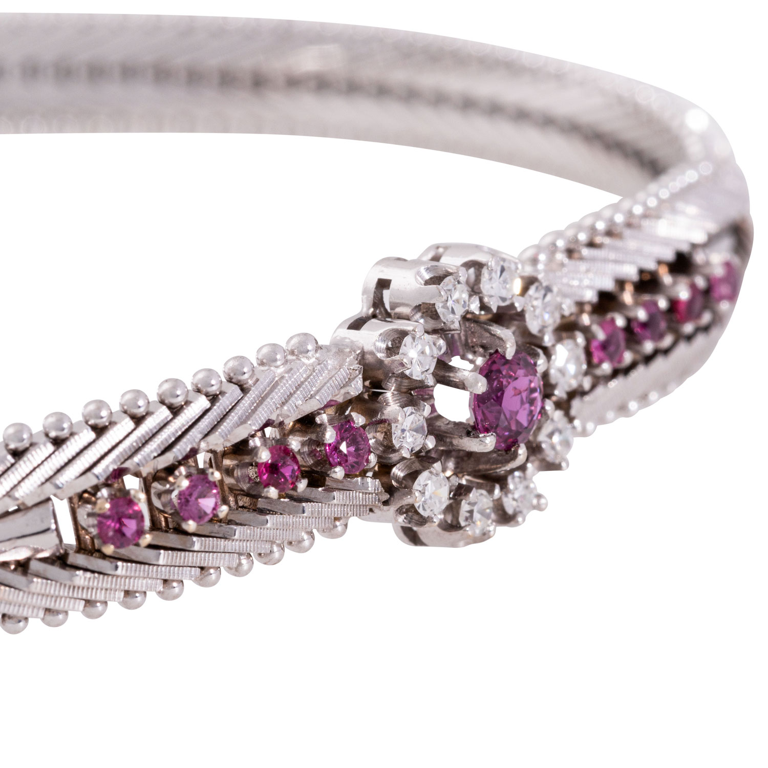 Panzerarmband mit 4 cab. Saphiren, 2 fac. Rubinen und 6 Diamanten,