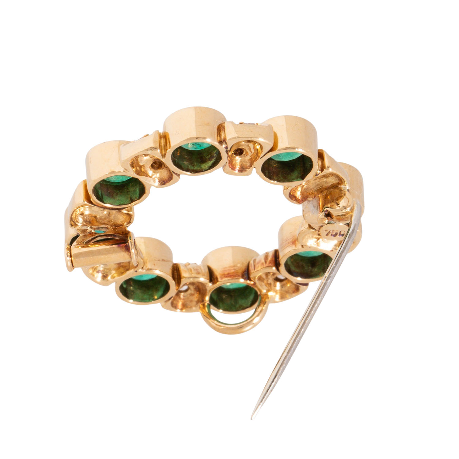 Anhänger / Brosche mit 8 Smaragden und 16 Brillanten
