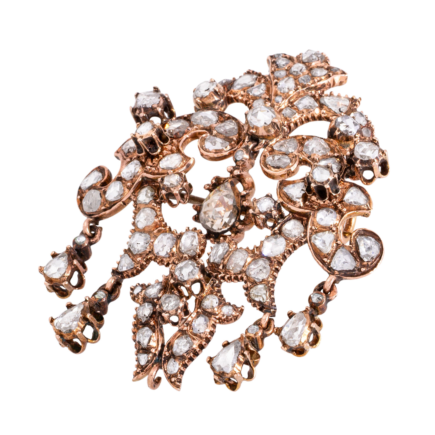 Floraler Anhänger/Brosche mit Altschliffdiamanten von zus. ca. 2,7 ct,