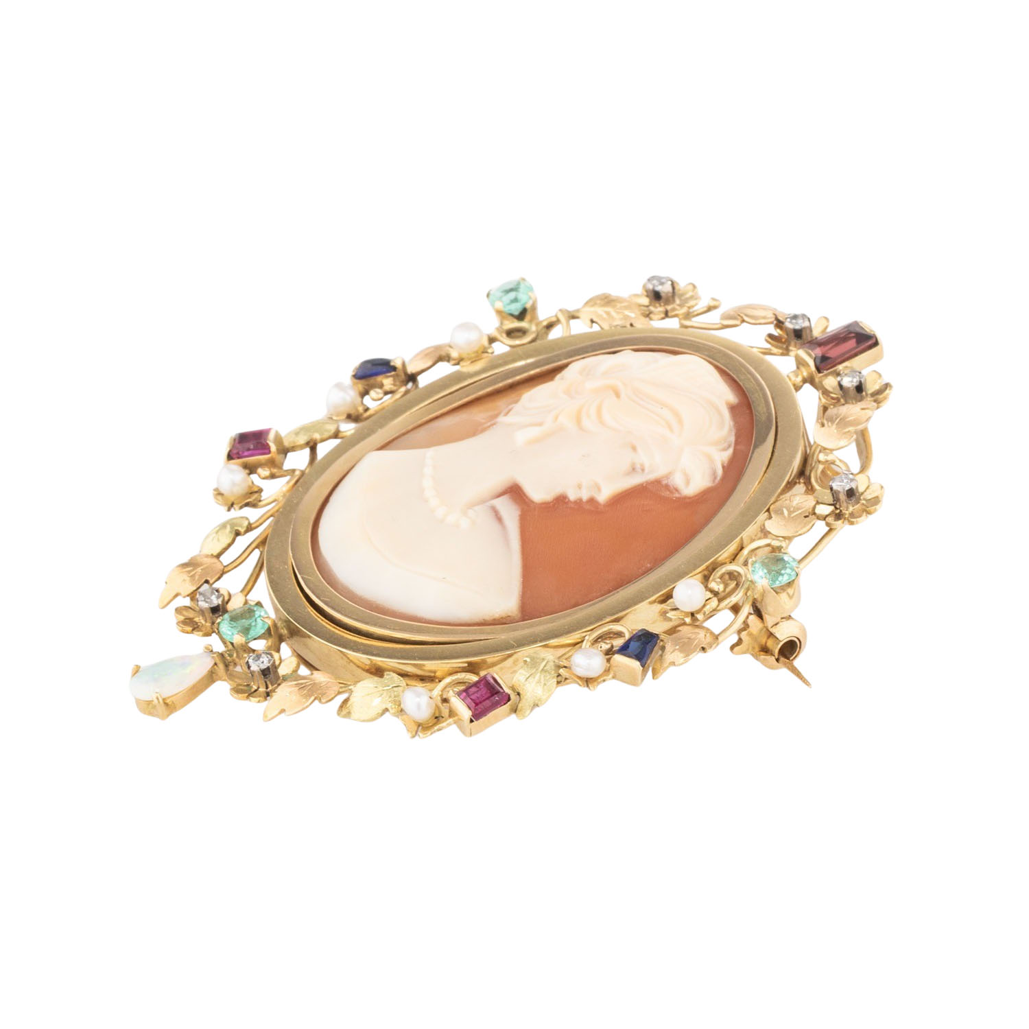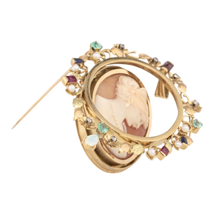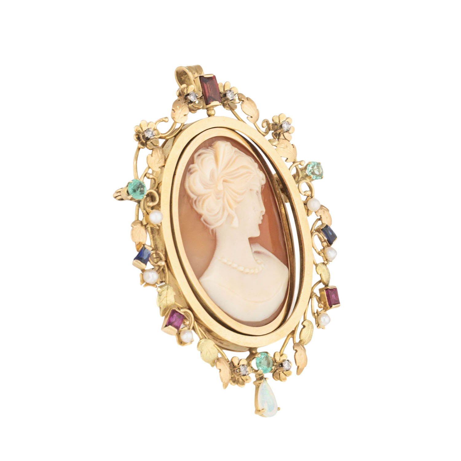 Brosche/Anhänger mit Muschelgemme 'Drei Grazien',