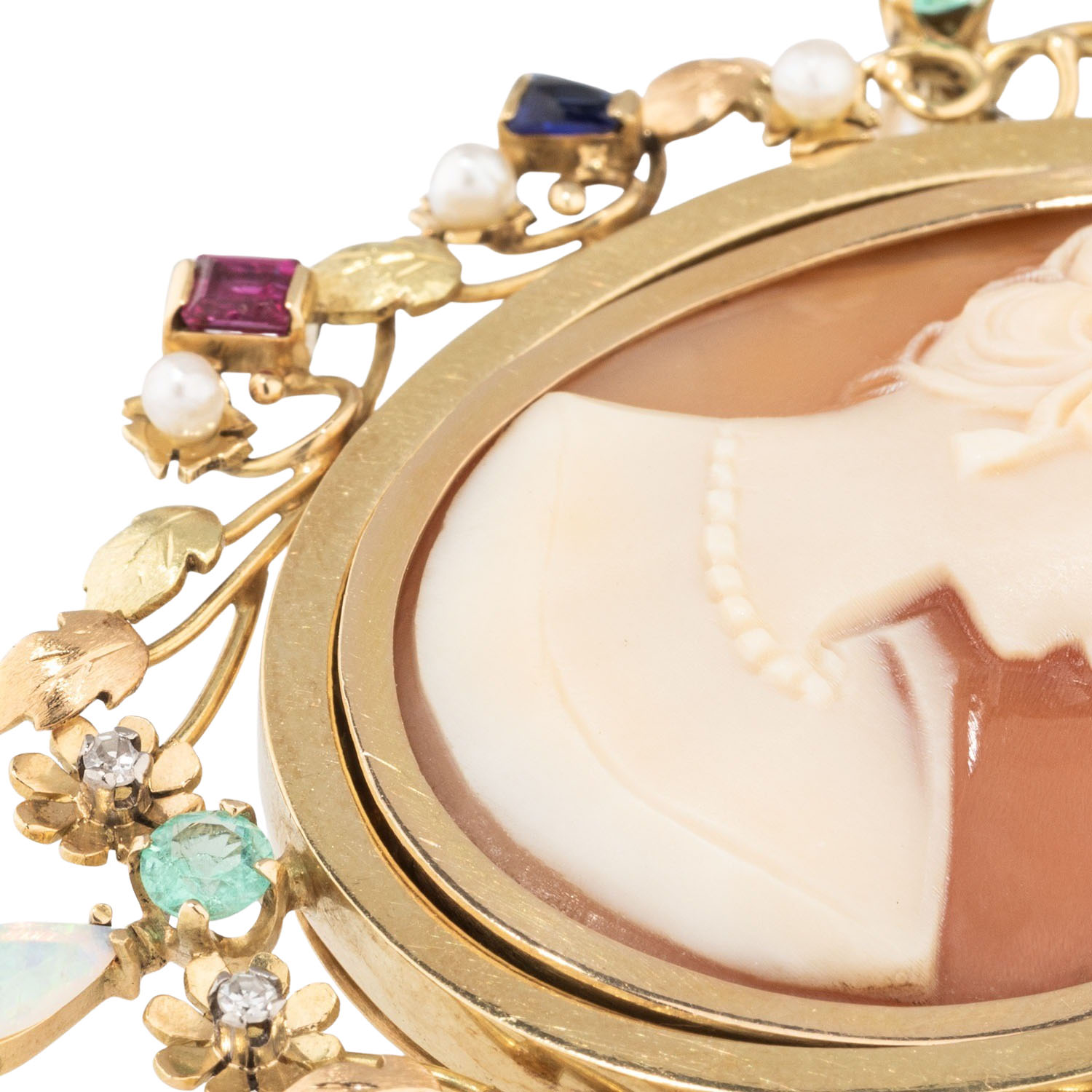 Anhänger/Brosche mit feiner Muschelkamee 'Flora'