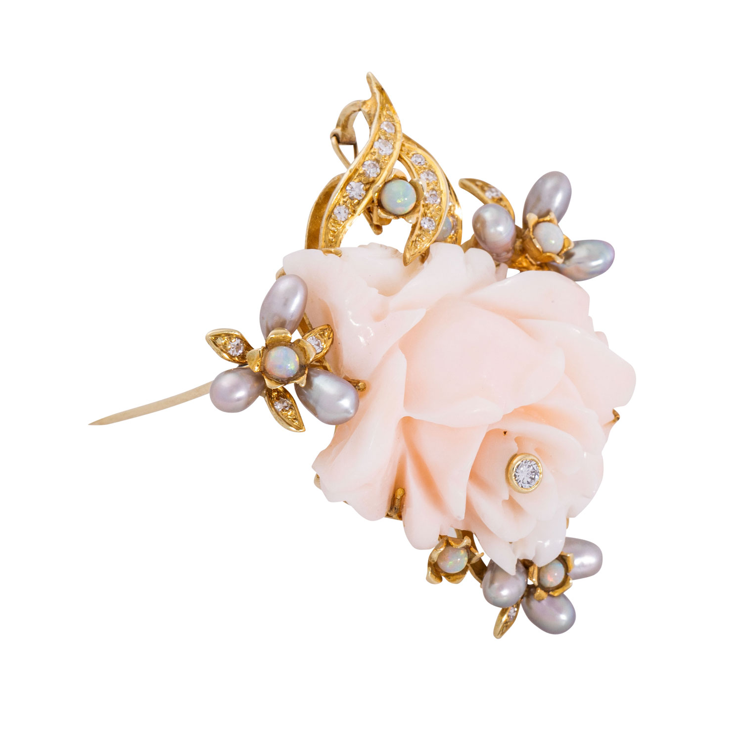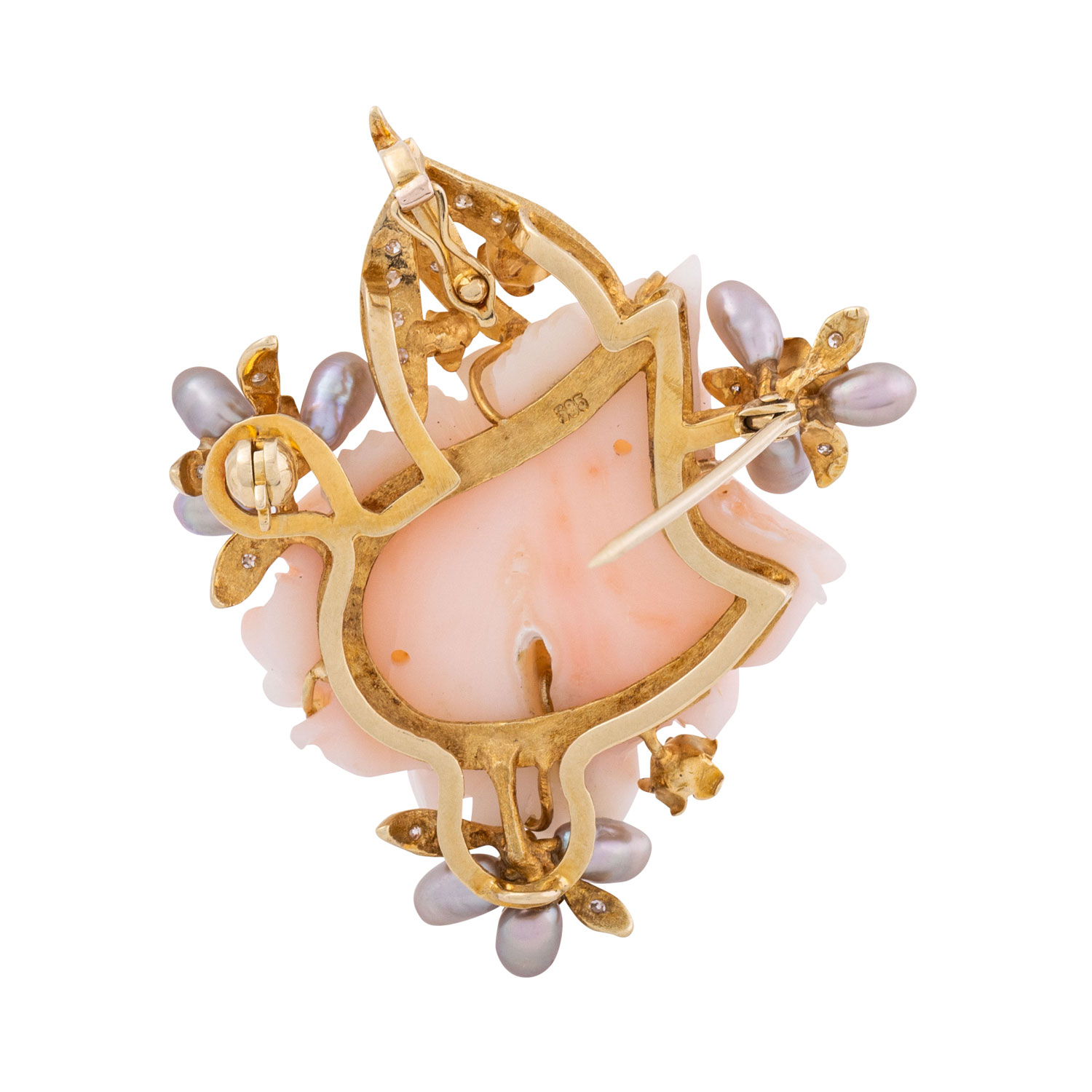 Brosche aus geschnitzter Engelshautkoralle,