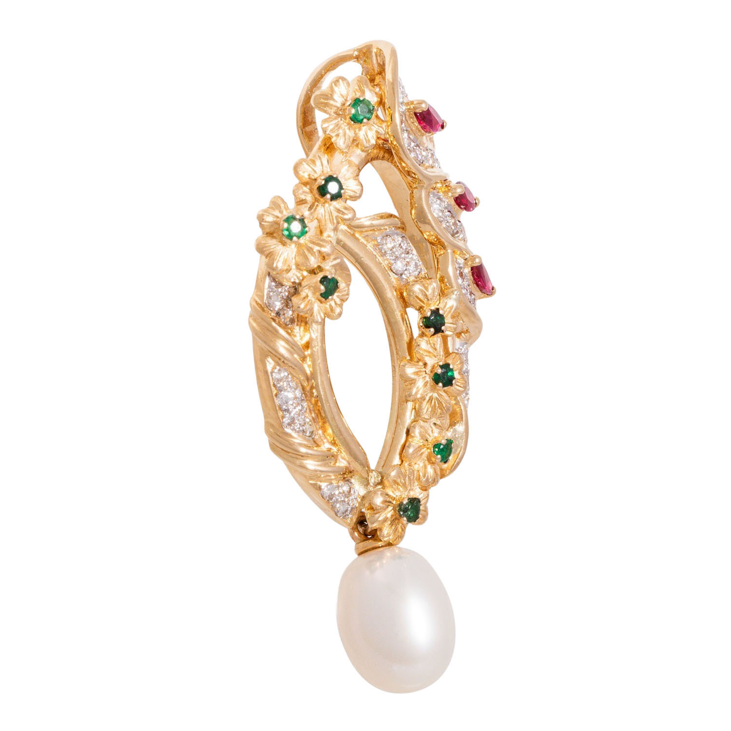 Anhänger floral mit Rubinen, Smaragden und Diamanten