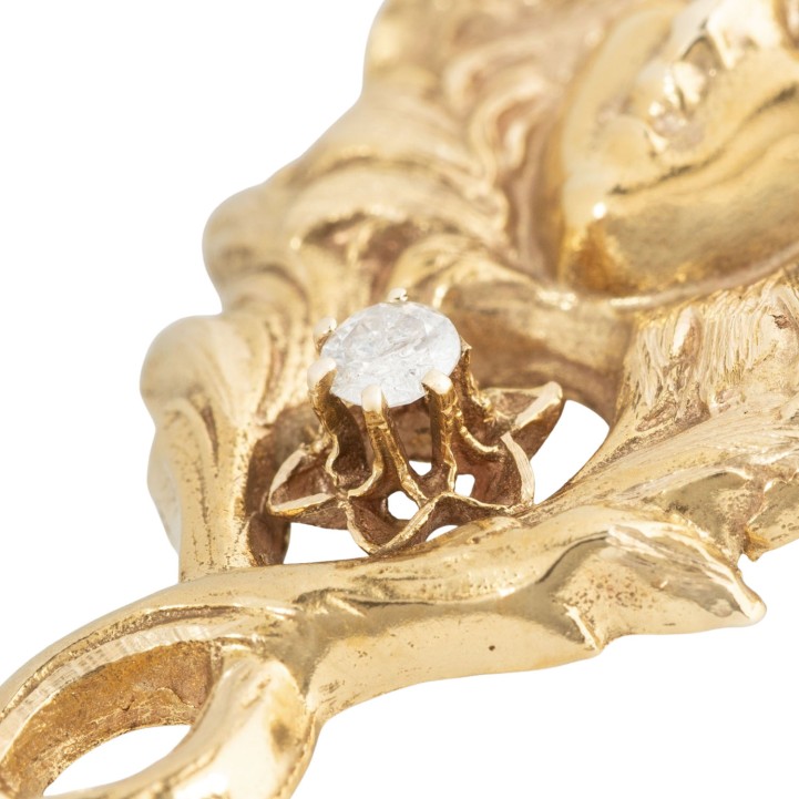 2 Brillanten, 2 Achtkantdiamanten, GG 14K, 5,4 g, L x B: 52 x 23 mm, Stotzen einer Fassung zu kurz (Gußfehler), 20. Jh., leichte Tragespuren.