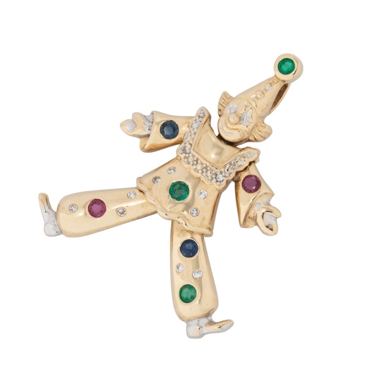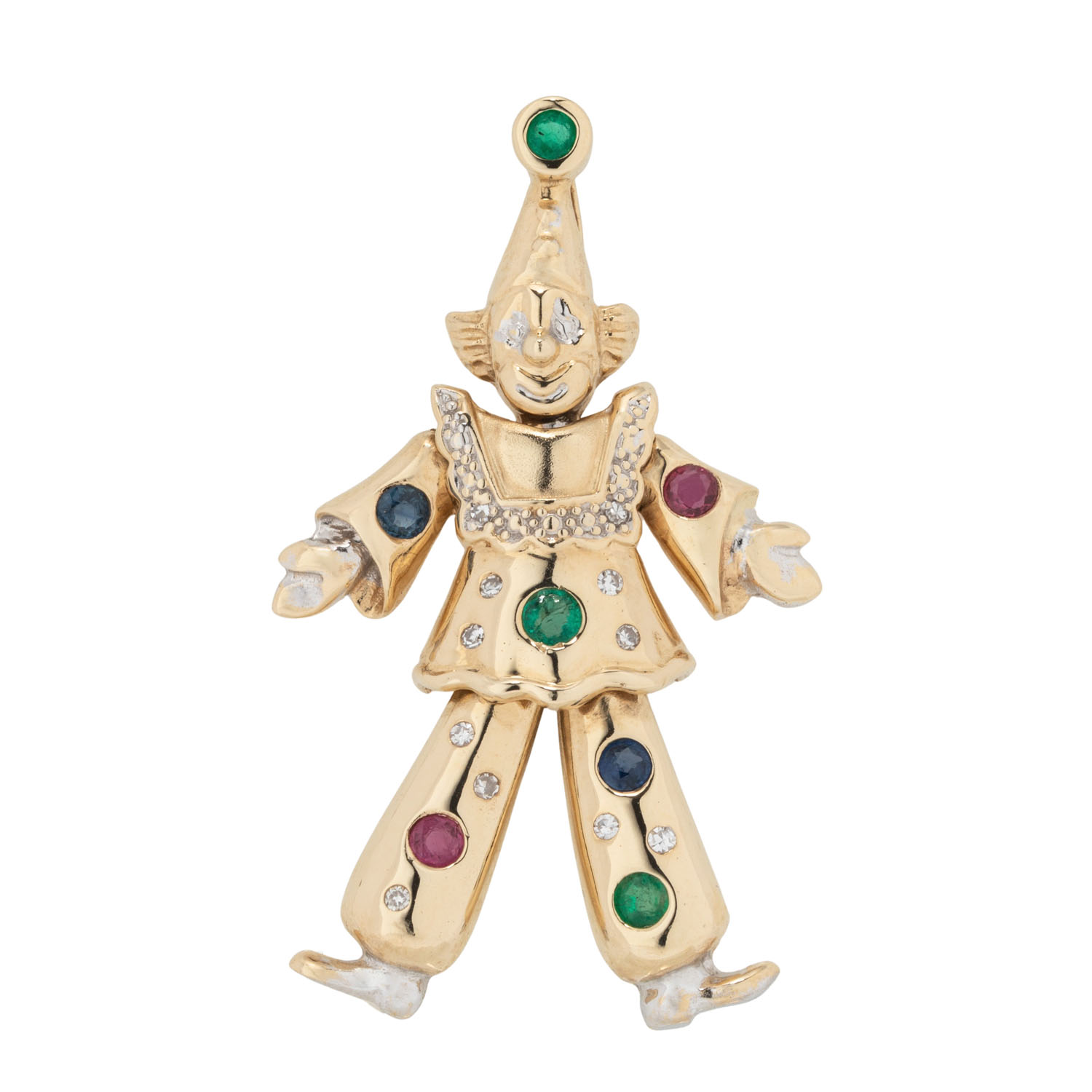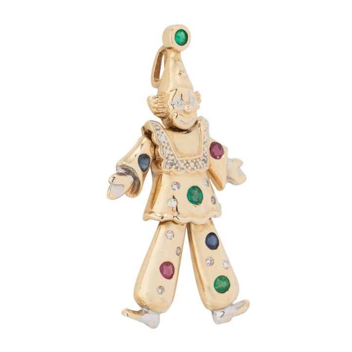 Anhänger "Harlekin" mit Diamant, Rubin, Saphir,