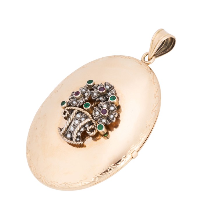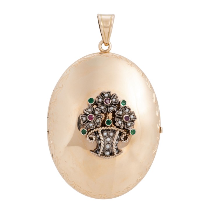 Anhänger/Medaillon, mittig mit Blumenkorb,