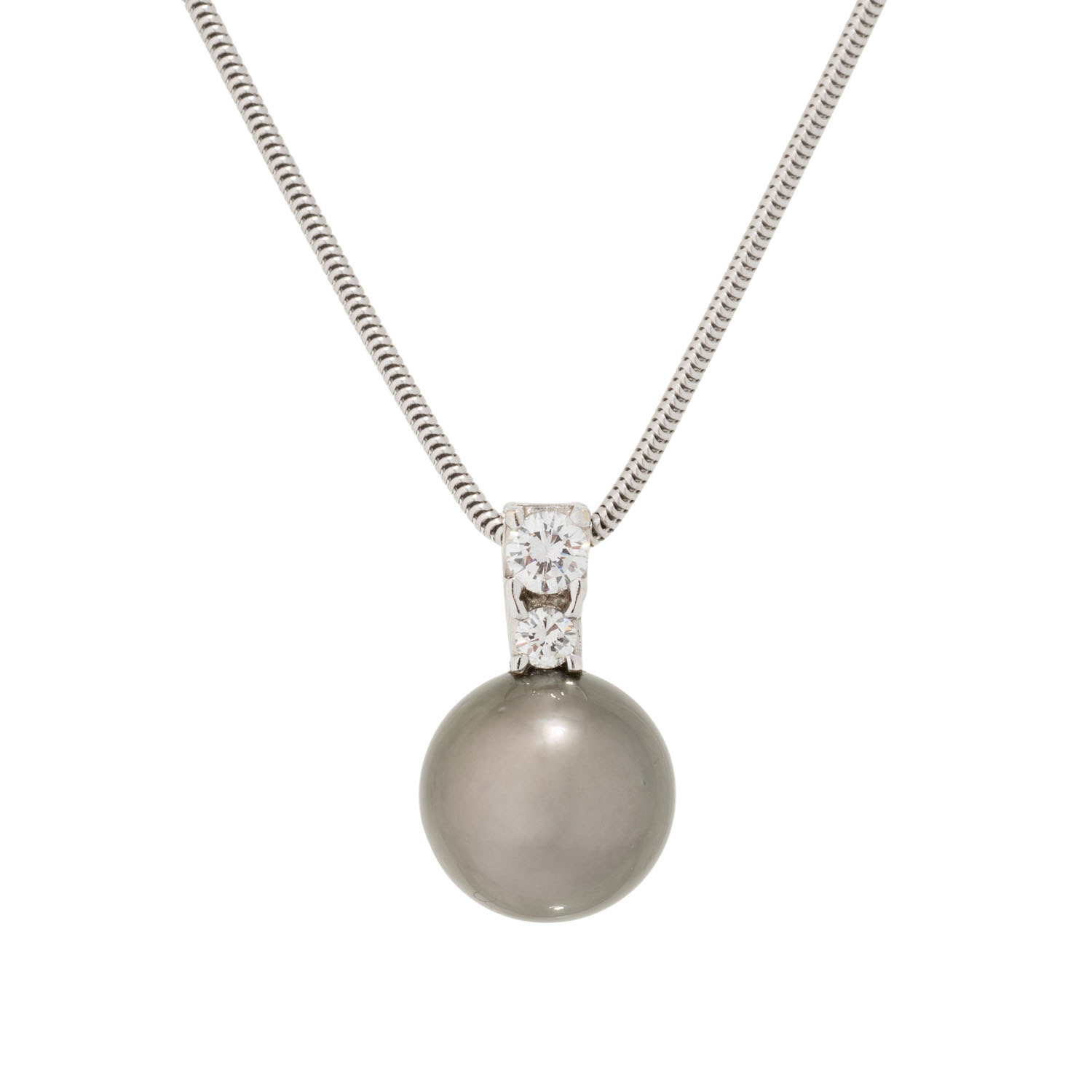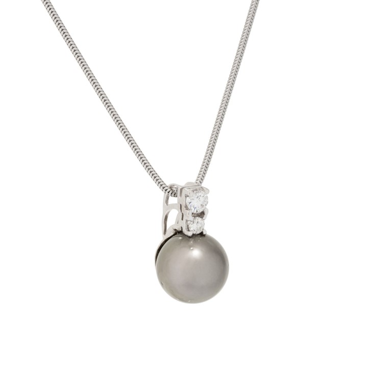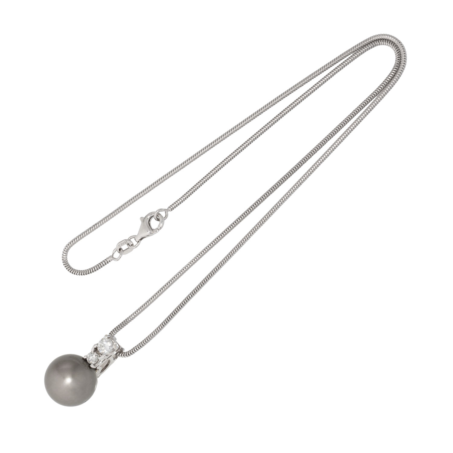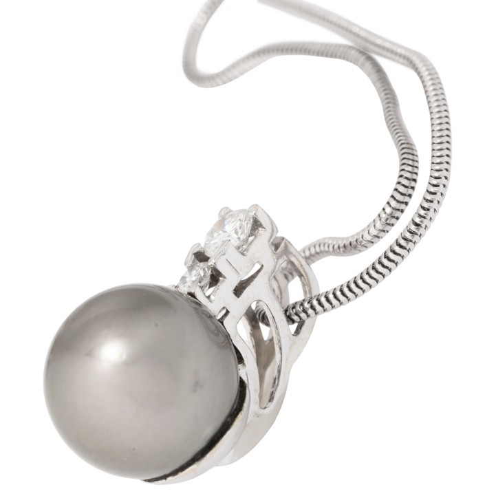 WEISS (H)/VS, Tahiti-Zuchtperle, D: 13 mm, feiner Lüster, an Schlangenkette, WG 14K, 9,3 g, L: 42 cm, Anhänger L x B 21 x 13 mm, 21. Jh. guter Zustand.