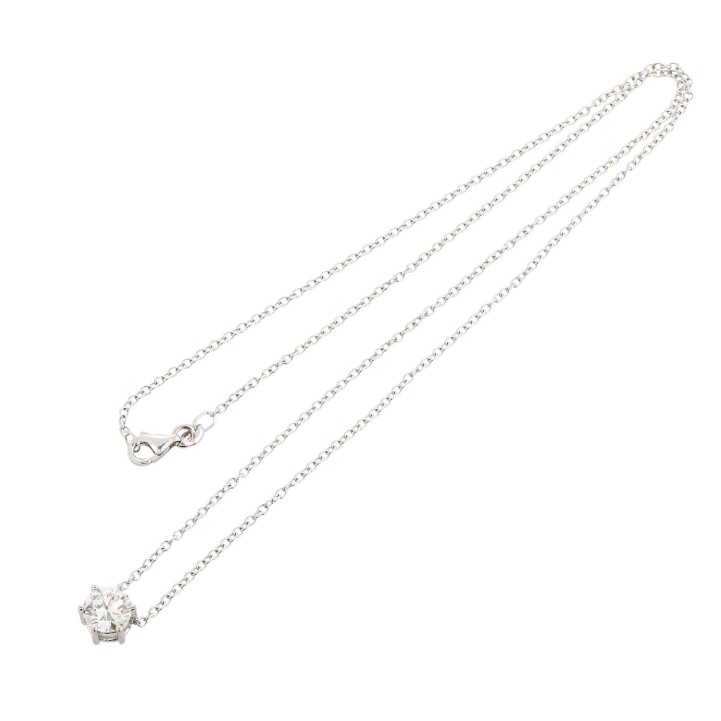WEISS- LGW (H-J) / VVS - VS, an Kette, WG 18K, 3,6 g, L: 45 cm, 21. Jh., neuwertig.