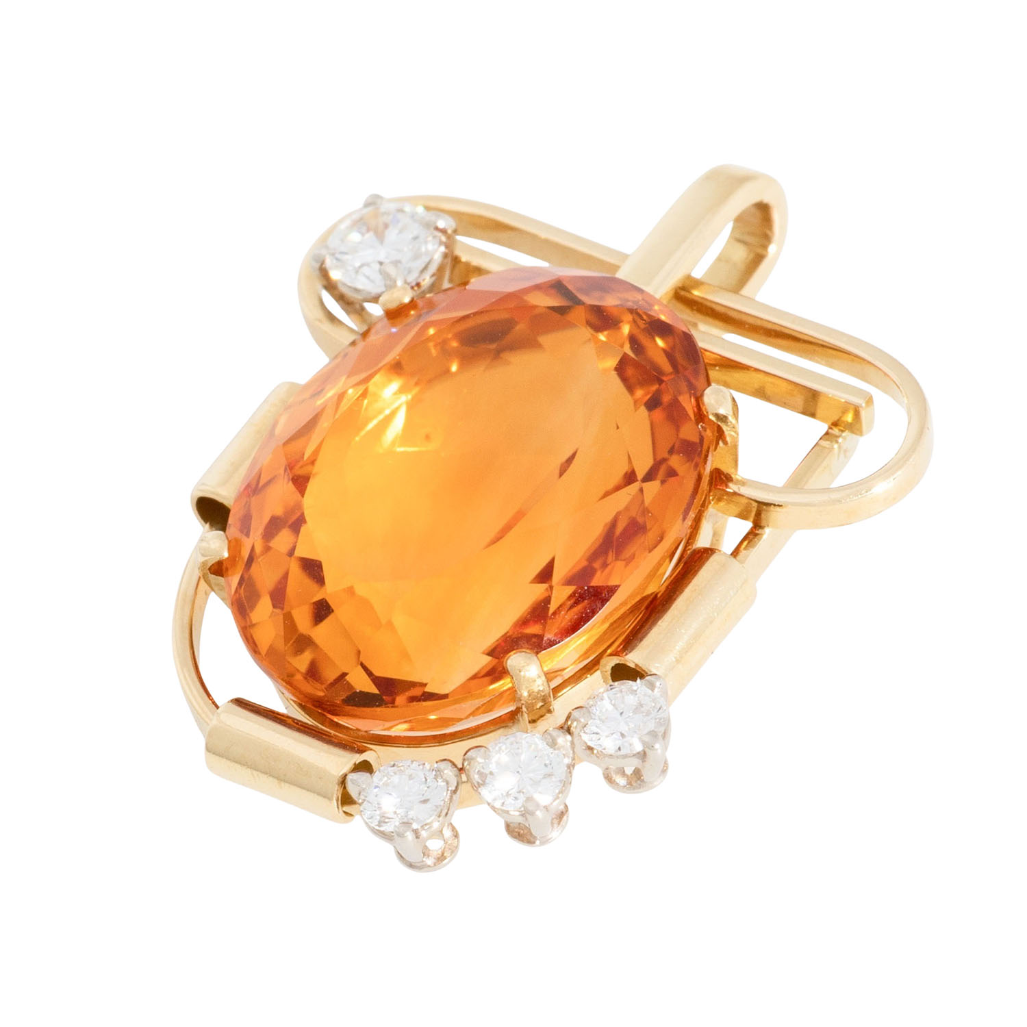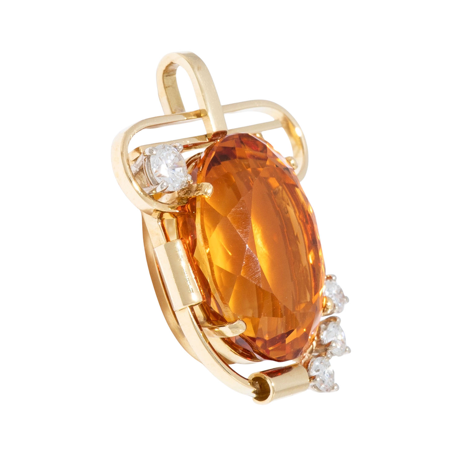 Citrin oval facettiert, ca. 17 x 14 mm, 4 Brillanten ges. ca. 0,5 ct, WEISS (H)/VS, GG/WG 18K, 7,0 g, L: 28 mm, B: 22 mm, Ende 20. Jh., minimale Tragespuren.