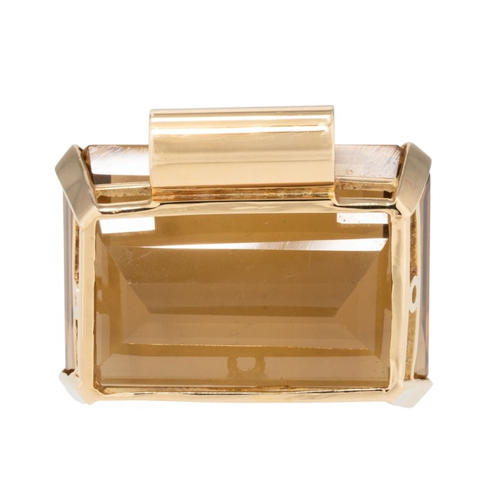 im achteckigen Treppenschliff, GG 14K, 17,4 g, 20./21Jh., wenige feine Kratzer auf der Tafel, leichte Tragespuren.