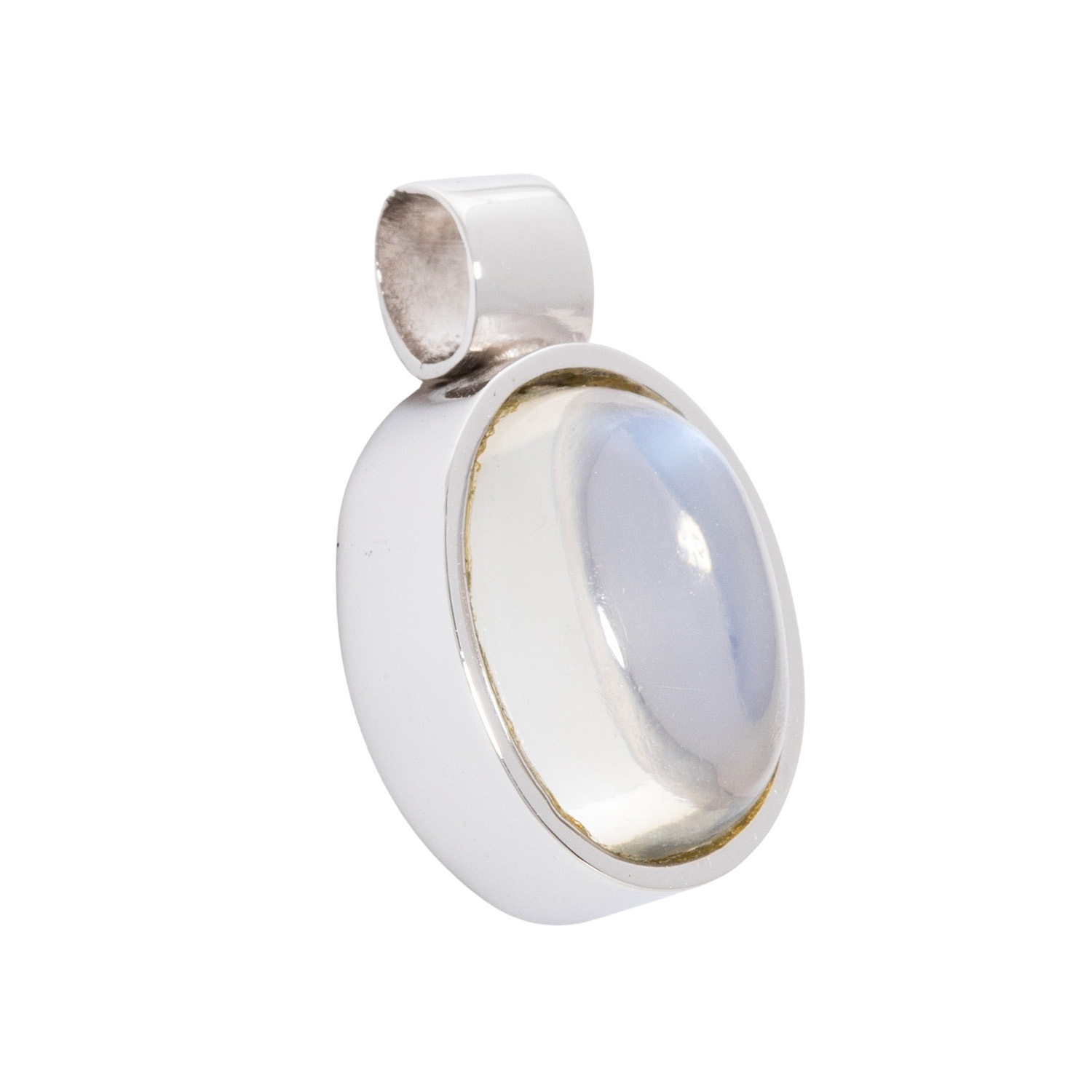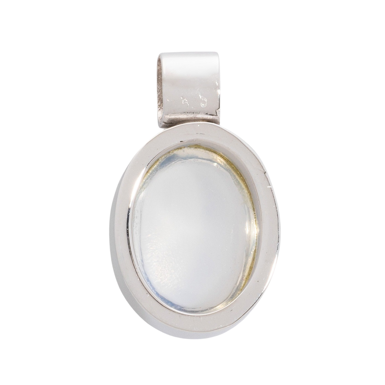 Hochfeiner Anhänger. Bes. mit 1 spektakulären Ceylon Mondstein 26,16 cts. u. Brillanten zus. 1,30 cts. FEINES WEISS/VSI-SI.