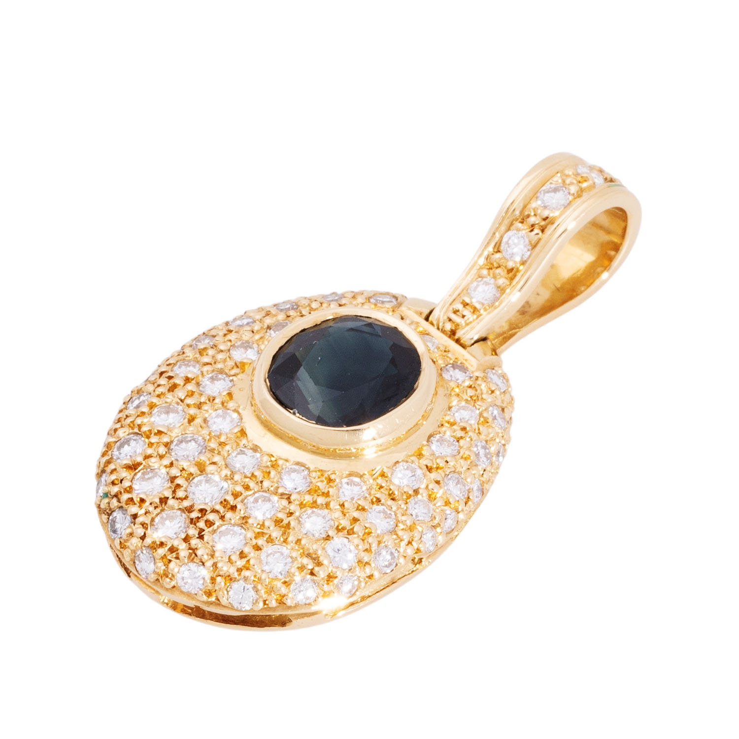 Prunkvoller Anhänger mit Saphir und Altschliffdiamanten