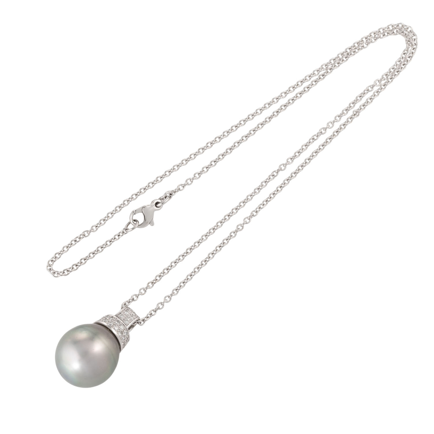 und 27 Brillanten von zus. ca. 0,50 ct, FW (G)/SI, an Ankerkette, WG 18 K, 15,7 g, L: 47 cm, 21. Jh. Neuwertig.