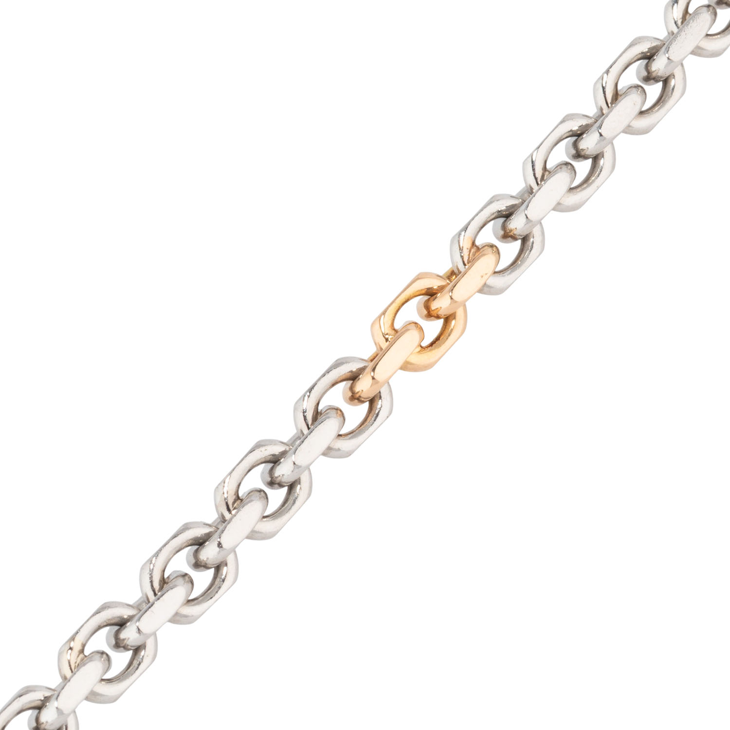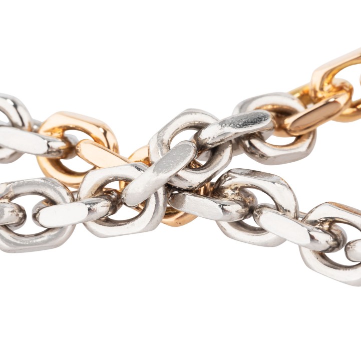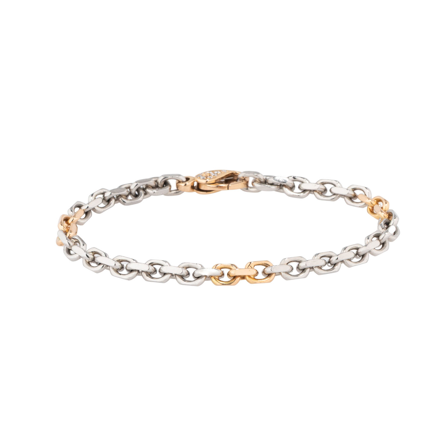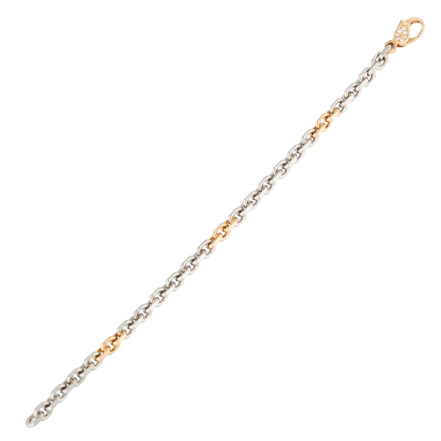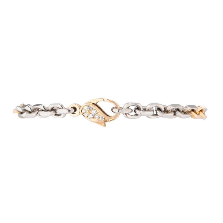 mit Karabinerhaken, besetzt mit 16 Brillanten, ges. ca. 0,20 ct, gute Farbe und Reinheit, Pt 950 / GG 18K, 30,3 g, L: 20 cm, B: 5 mm, Anker geschliffen, Ende 20. Jh., minimale Tragespuren.