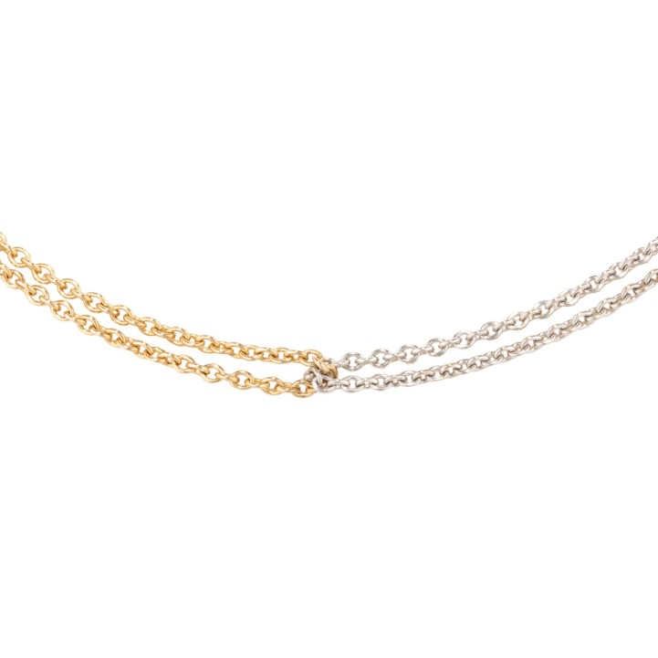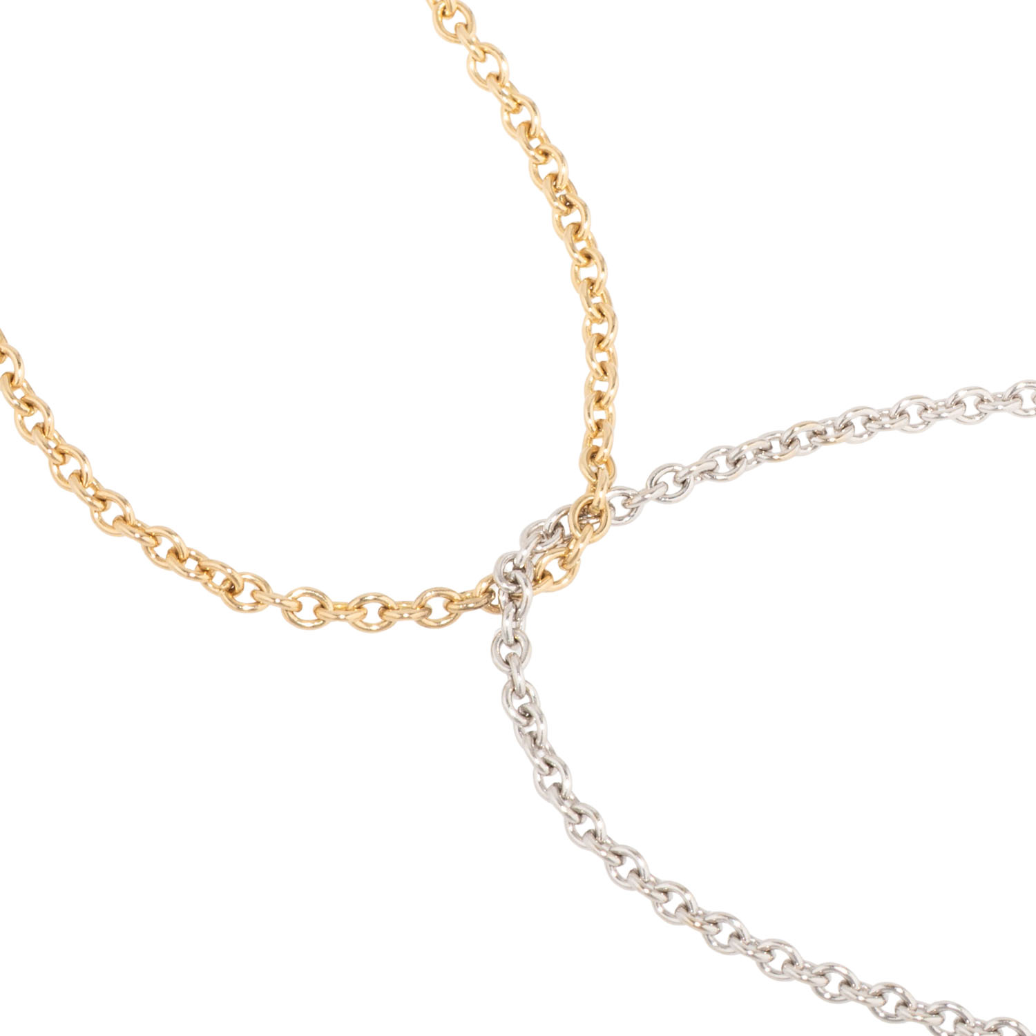 GG/WG 14K, 5,6 g, L: 42 cm, Rundanker 1 mm, Karabinerhaken, Ende 20. Jh., leichte Tragespuren.