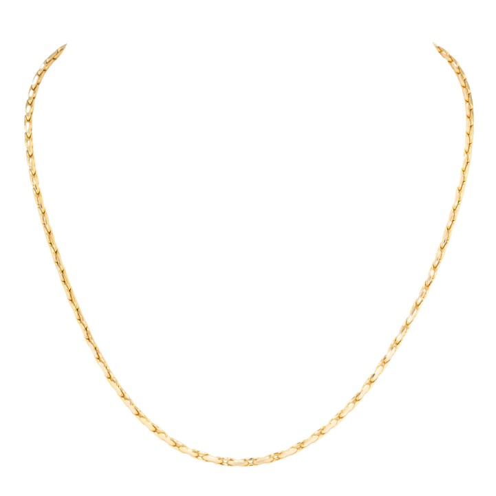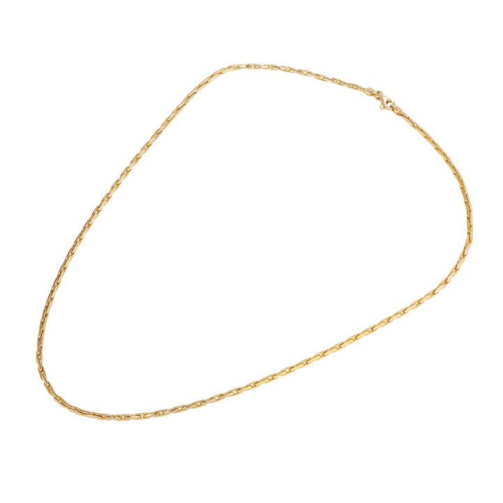 flach, GG 14K, 5.7 g, L: ca. 42 cm, B: ca. 1,5 mm, Mitte 20. Jh, leichte Tragespuren.