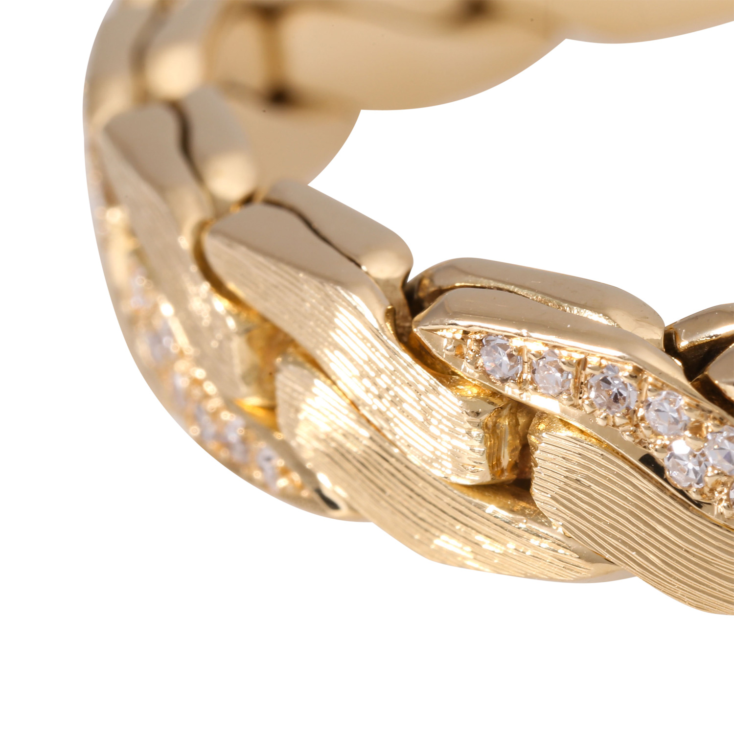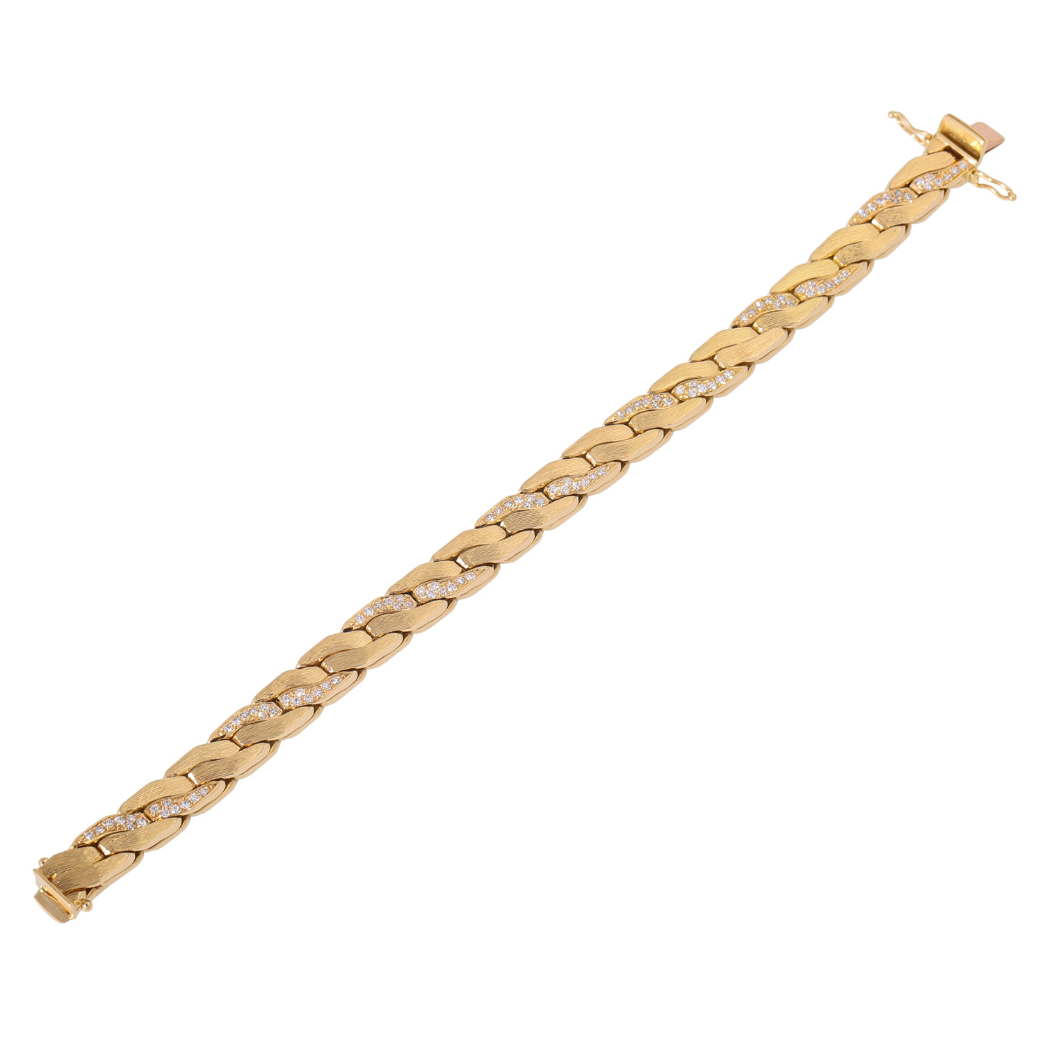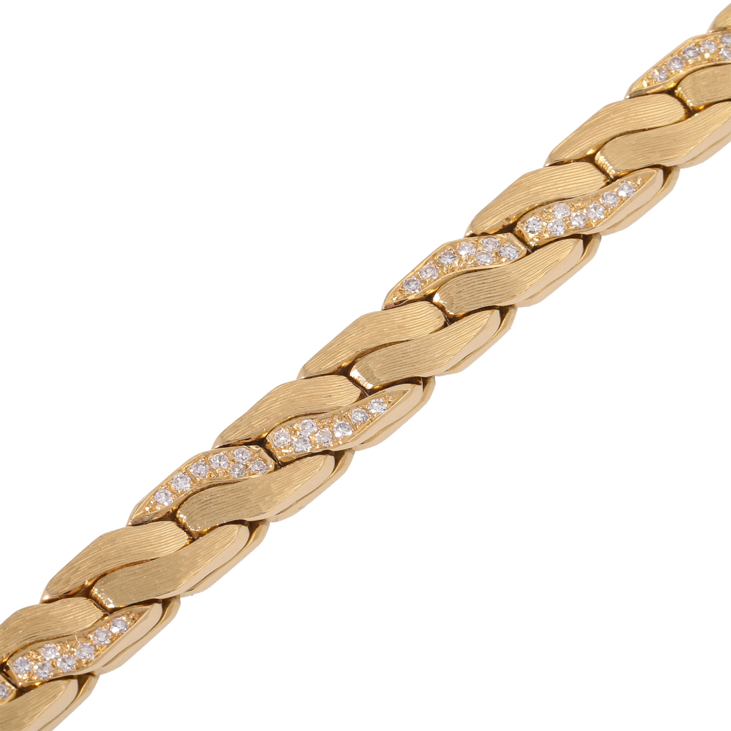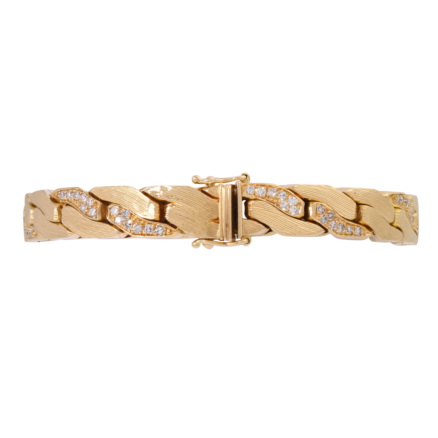 ges. ca. 1 ct, gute Farbe und Reinheit, GG/RG 18K, 69,9 g, L: 19 cm, B: 8 mm, Oberfläche strichmattiert, Kastenschloß mit 2 Sicherungsachten, 2. Hälfte 20. Jh., minimale Tragespuren.