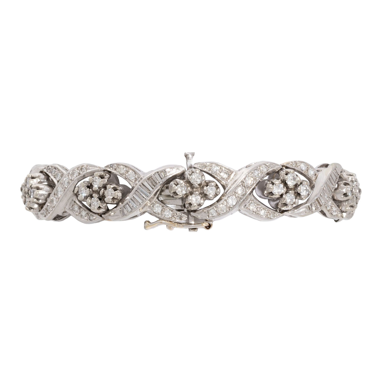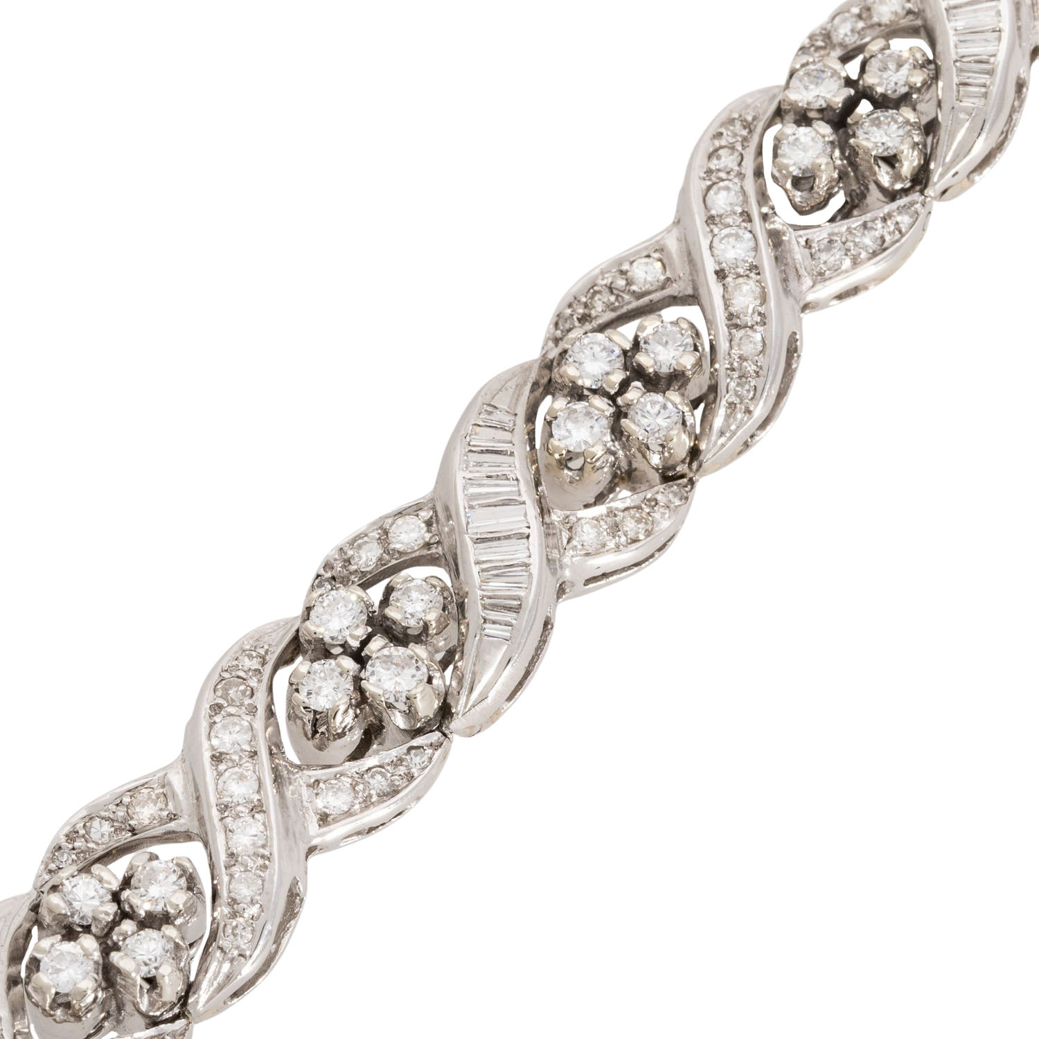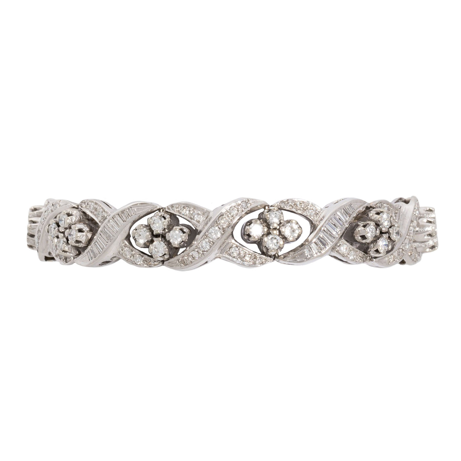 (Brillantenschliff, Achtkant, Rechteck, Trapez), ges. ca. 3 ct, mittlere Farbe und Reinheit, Platin-Gold-Legierung, 35,5 g, L: 16,6 cm, B: 11 mm, Kastenschloß mit Doppelschnepper, Sicherungsacht, Ende 20. Jh., minimale Tragespuren, einige Diamanten mit starken naturals.