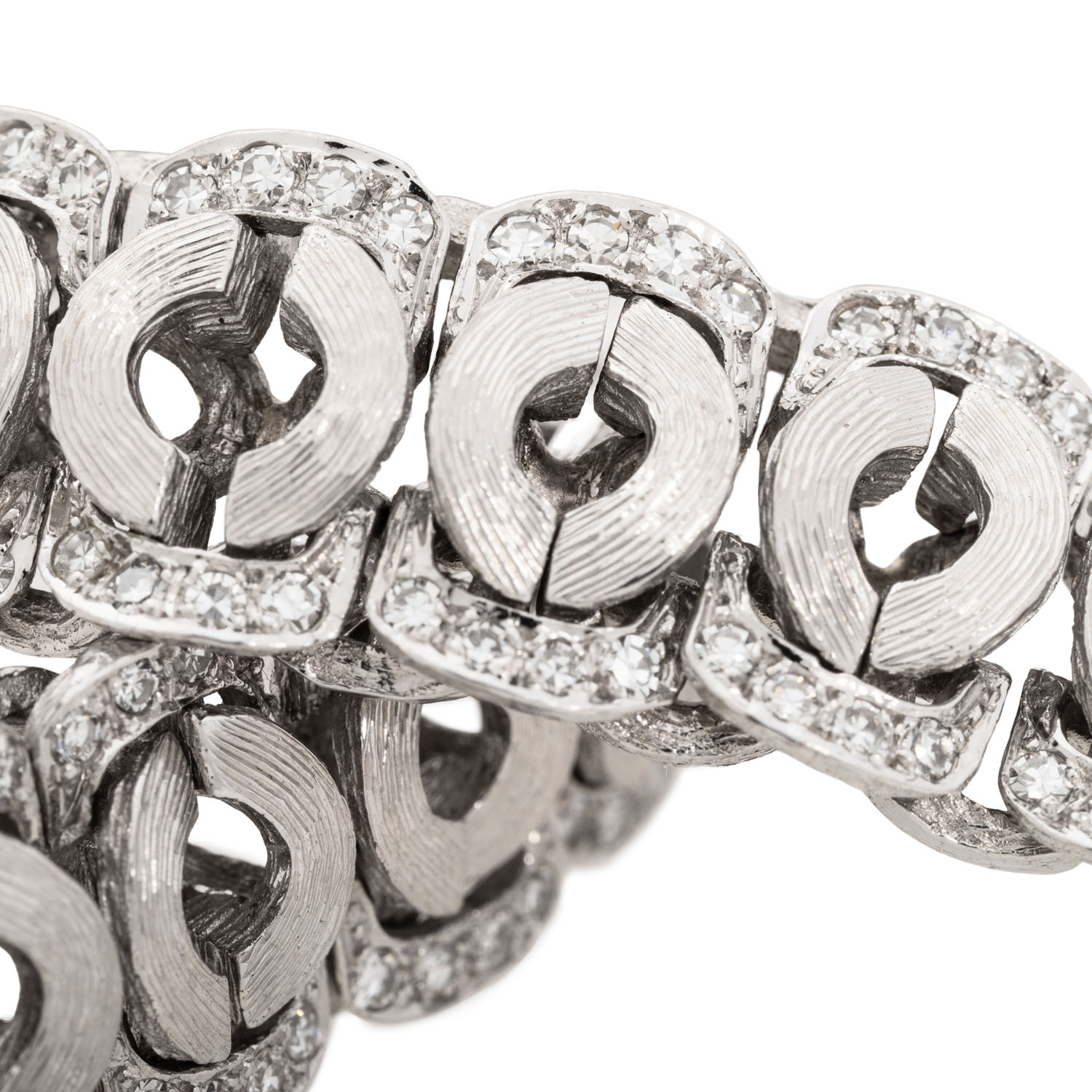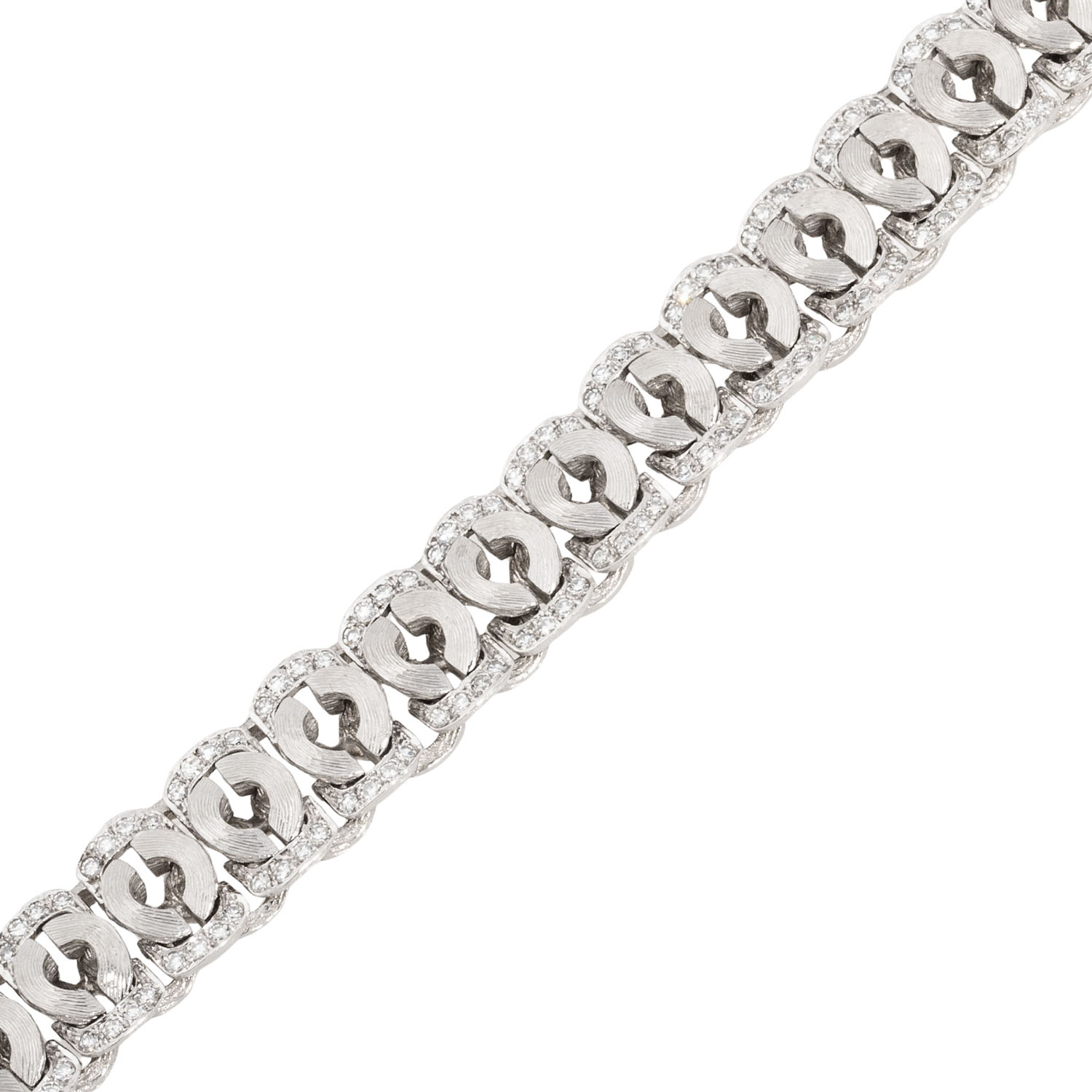 ca. 1,98 ct, WG 18K, 53,4 g, L: 18,6 cm, B: 11,6 mm, Oberfläche strichmattiert, Kastenschloß, 2 Sicherungsachten, Ende 20. Jh., minimale Tragespuren.