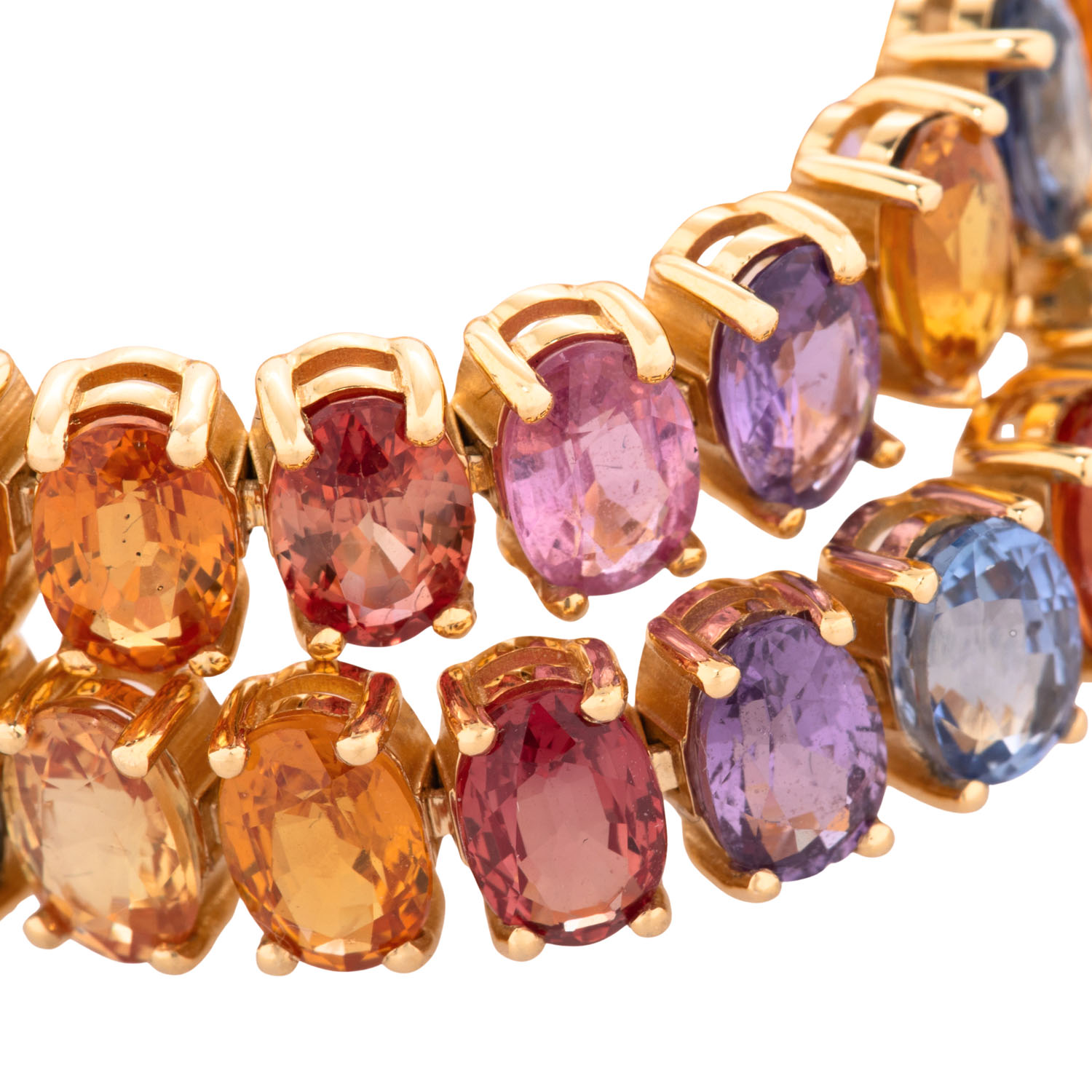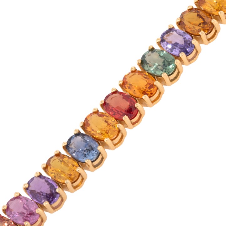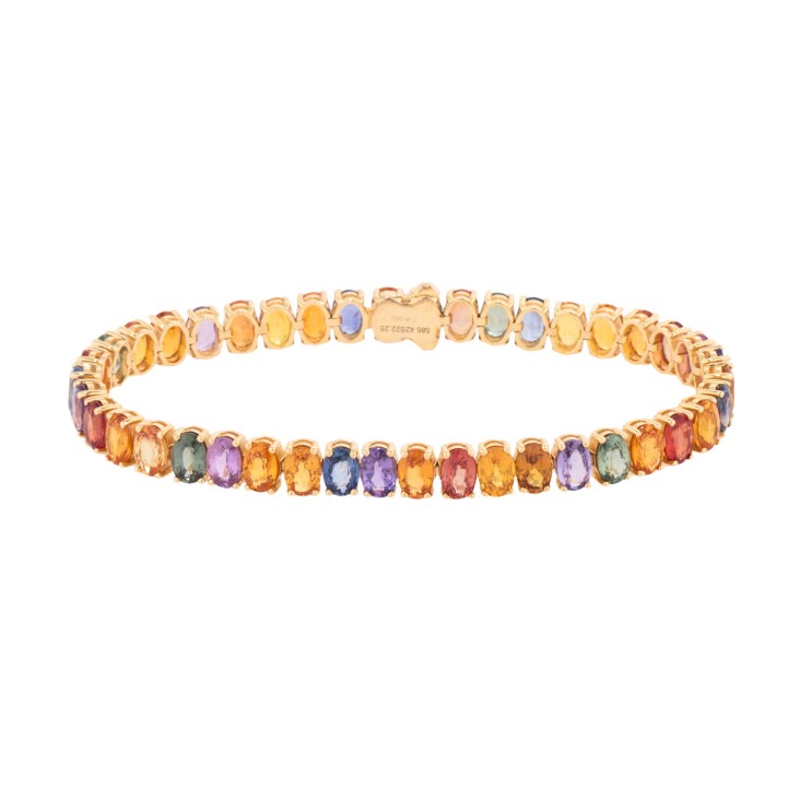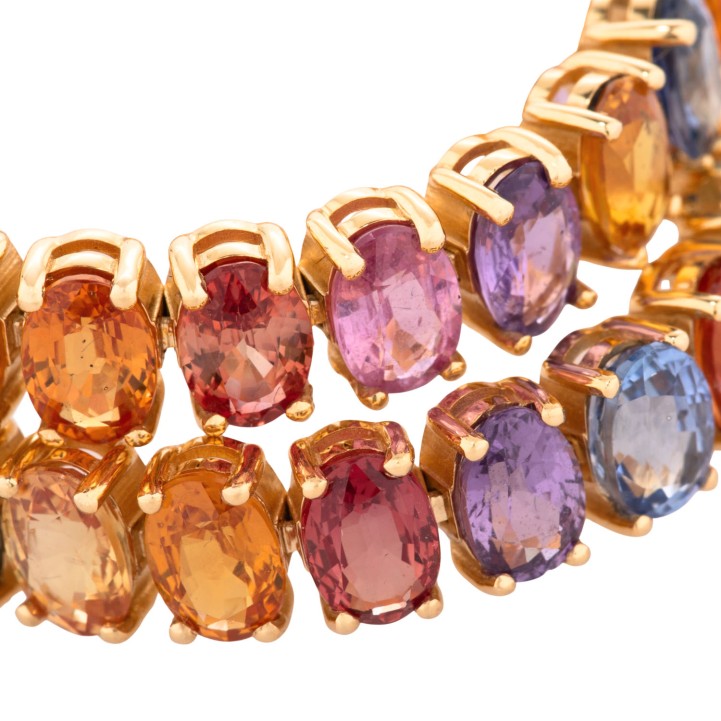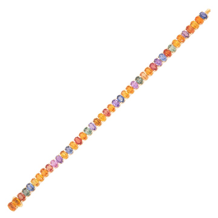 von zus. ca. 22,25 ct, GG 14K, 16,6 g, L: ca. 18 cm, 21. Jh., minimale Nutzungsspuren, inkl. IGI Juwelenbericht (06/2023). Einige der Saphire zeigen Hinweise auf eine Hitzebehandlung bei hohen Temperaturen, möglicherweise diffussionsbehandelt.