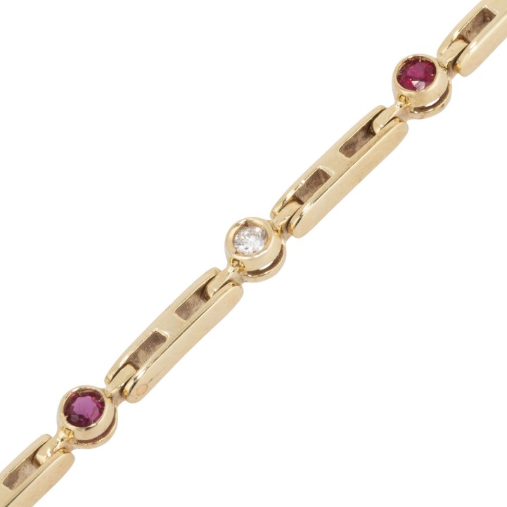 Armband mit 6 Rubincabochons und Brillanten