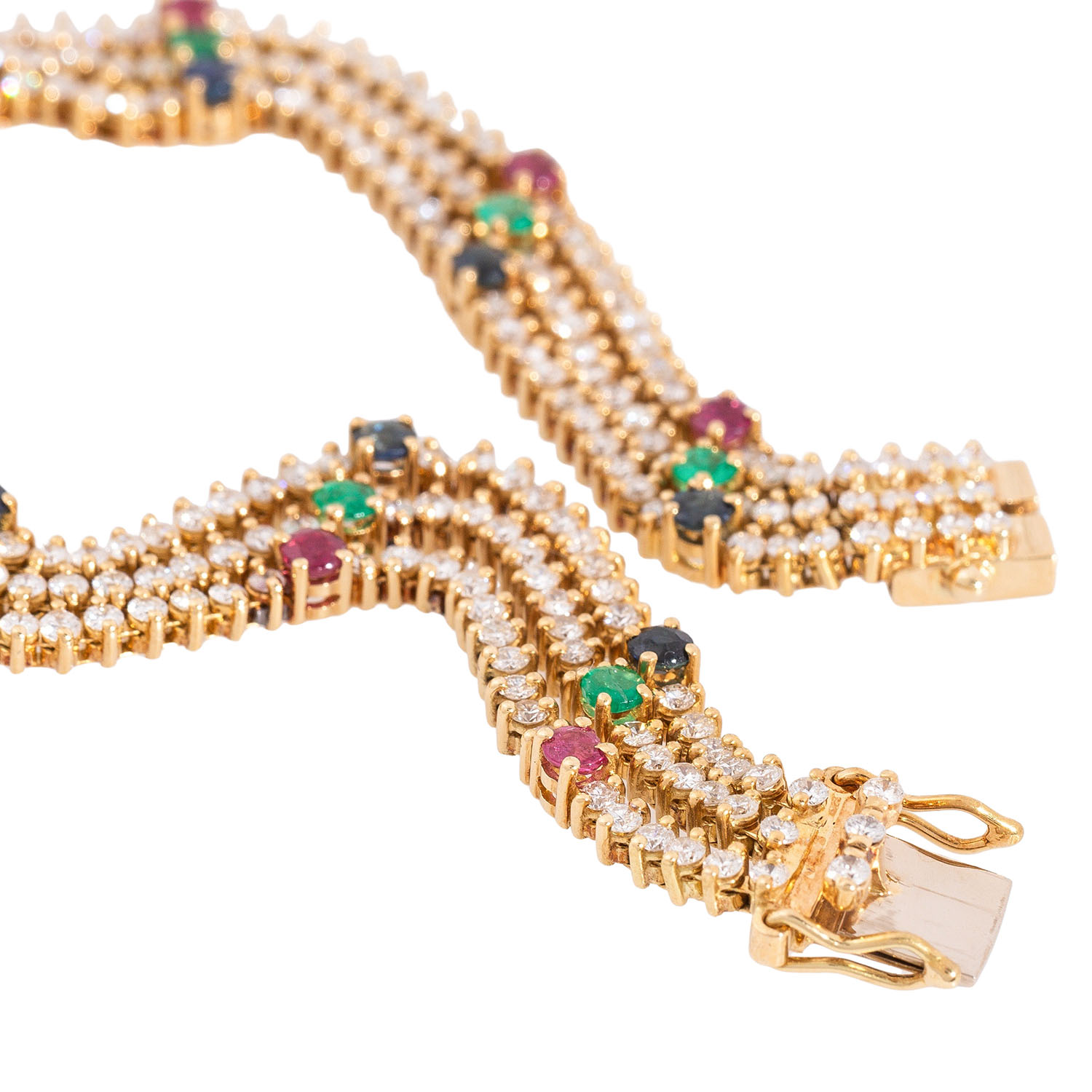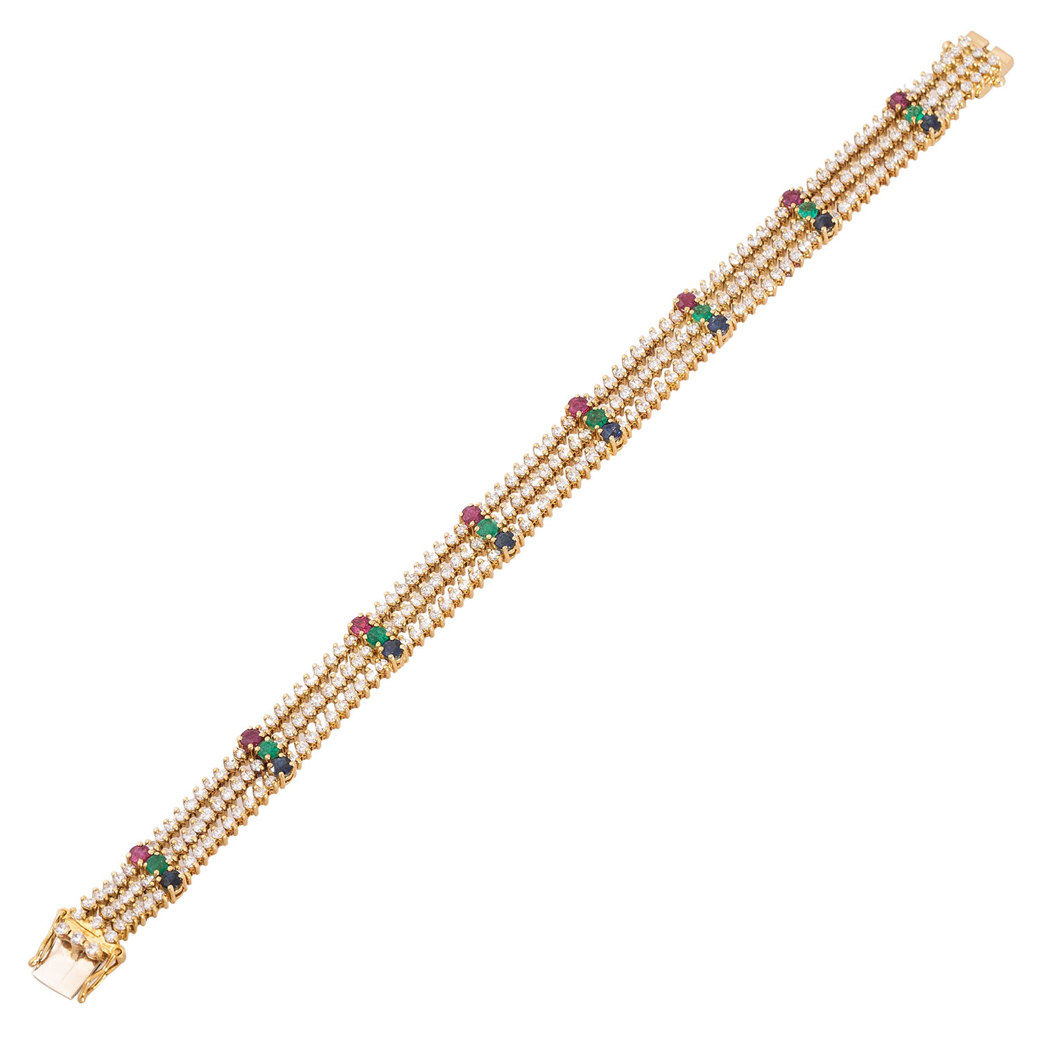 Armband mit 9 Saphiren, 9 Rubinen, 9 Smaragden und 2 Brillanten