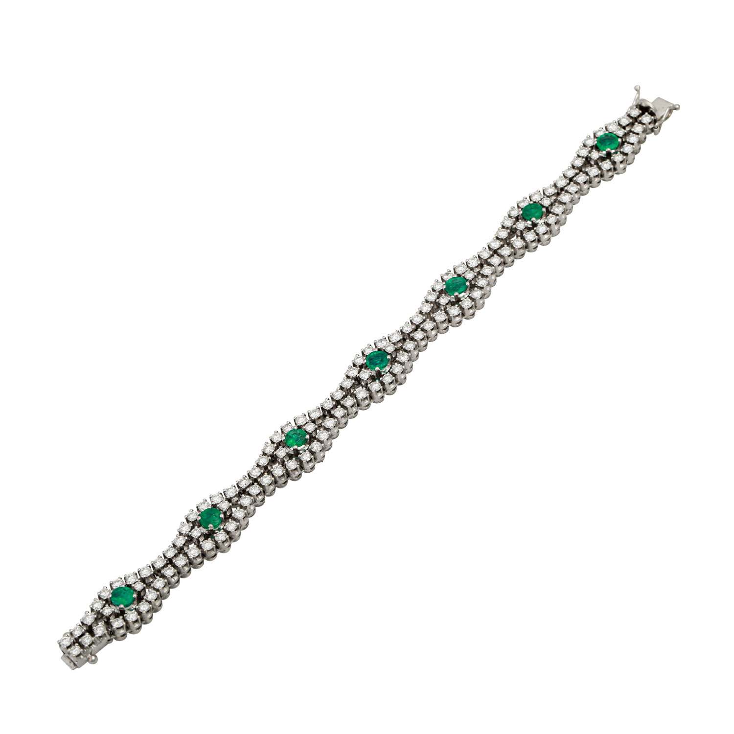 von zus. 6 ct, gute Farbe u. Reinheit, Smaragde zus. ca. 2,5 ct, WG 18K, 34,6 gr, L: ca. 18 cm, 2. Hälfte 20. Jh., Tragespuren. (6)