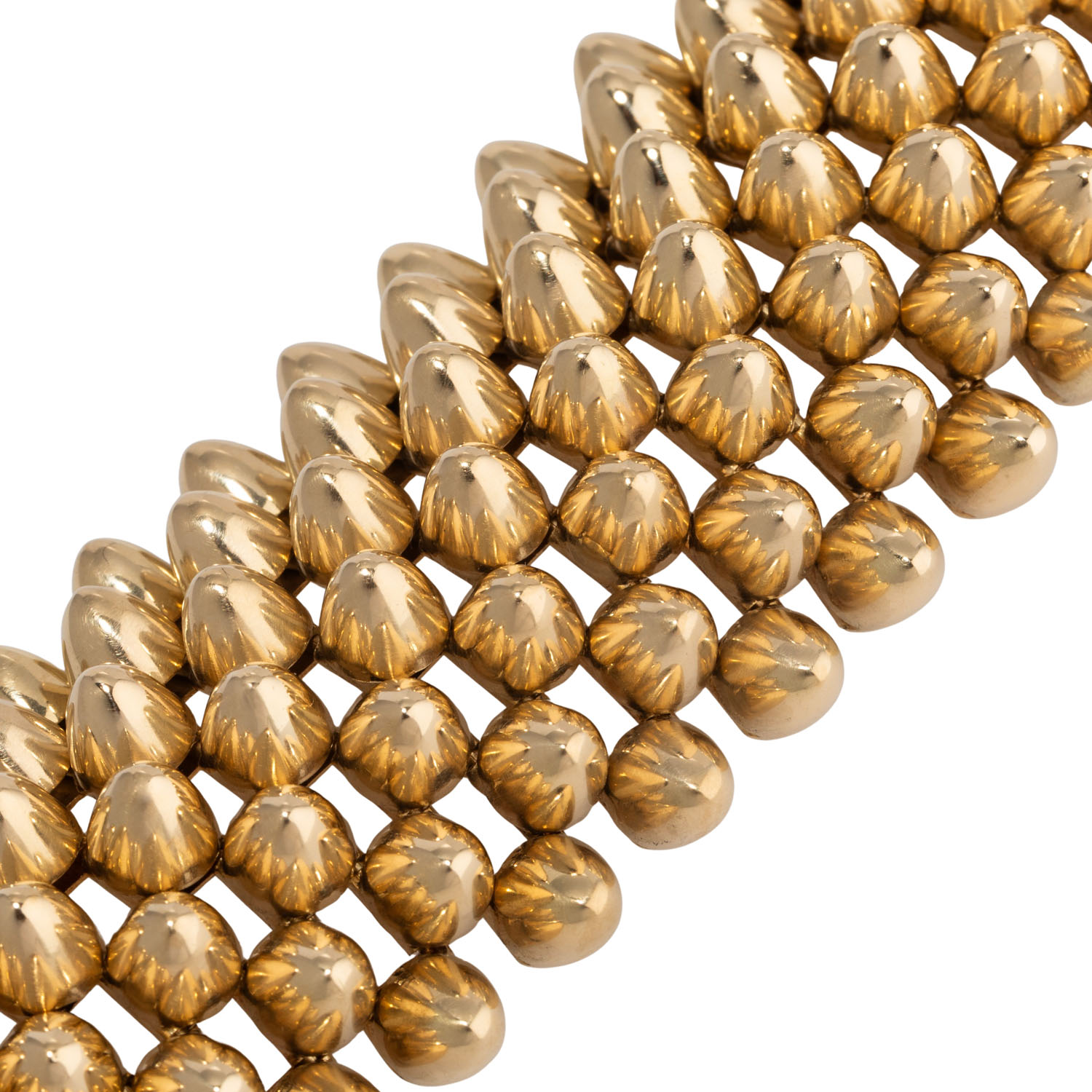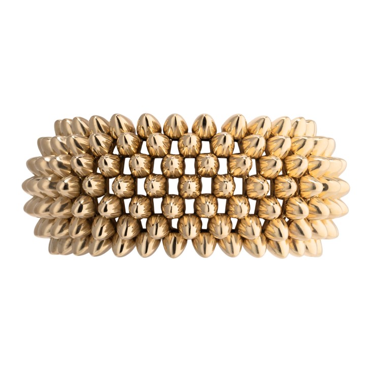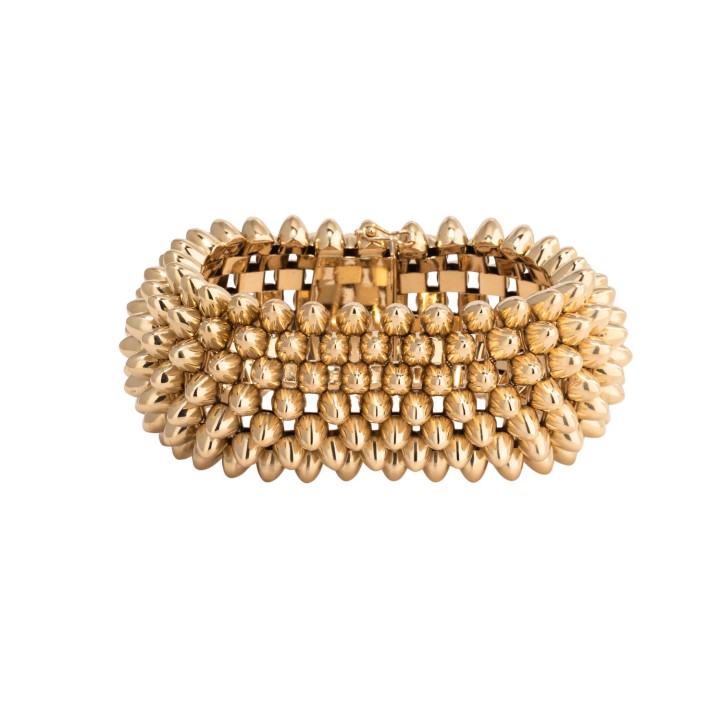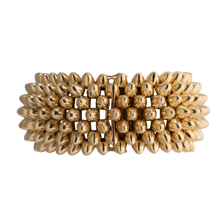 GG 18K, 162,7 g, L: 22 cm, B: 35 mm, Kastenschloß, 2 Sicherungsachten, 2. Hälfte 20. Jh., leichte Tragespuren.