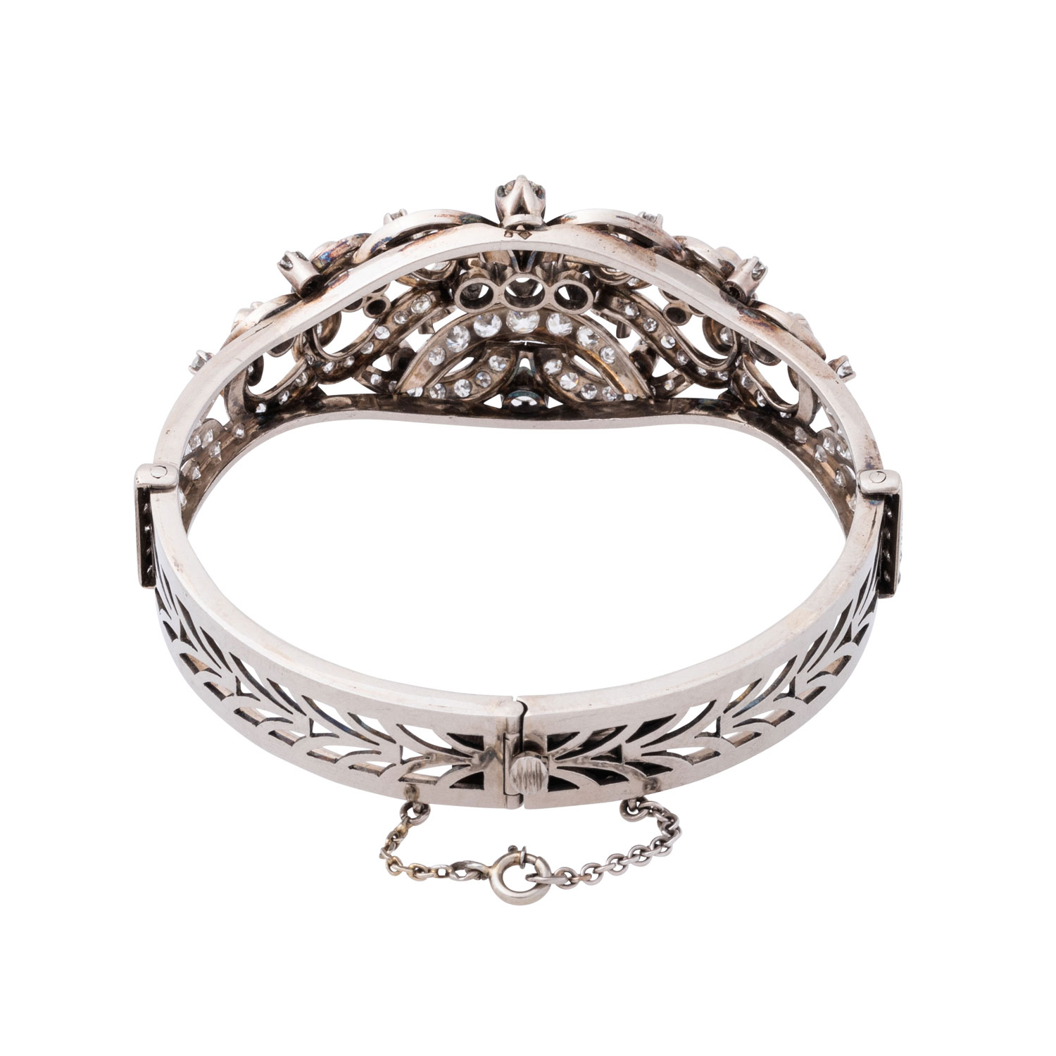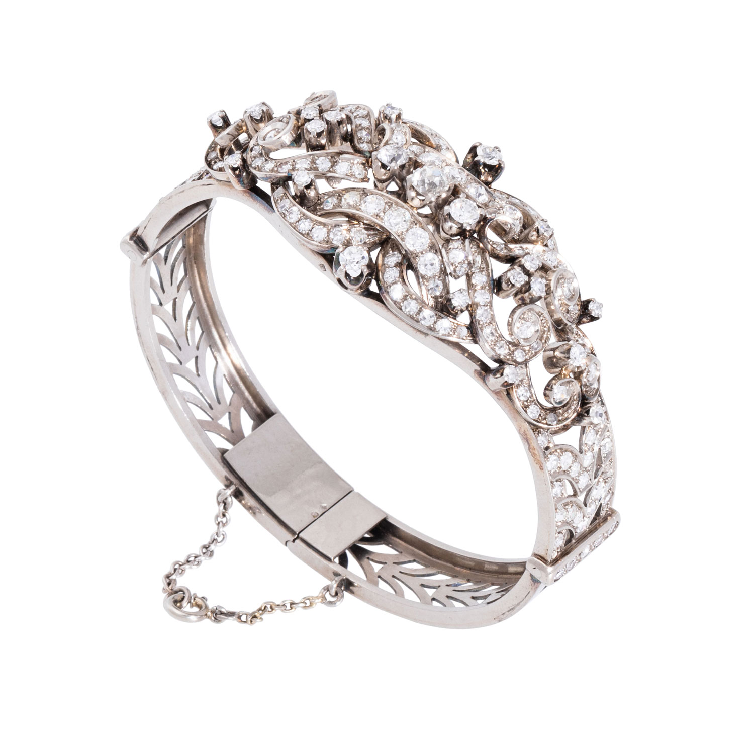 17 Altschliffdiamanten zus. ca. 1,80 ct, ca. LGW-GW (I-L)/SI-P1 sowie 155 Achtkantdiamanten zus. ca. 3 ct, ca. LGW-GW (I-L)/SI, WG 18 K, 49,1 g, Mitte 20. Jh., guter Erhaltungszusand, Diamanten teilsweise bestoßen, Land- und Jahrespunze: Lissabon ab 1938.