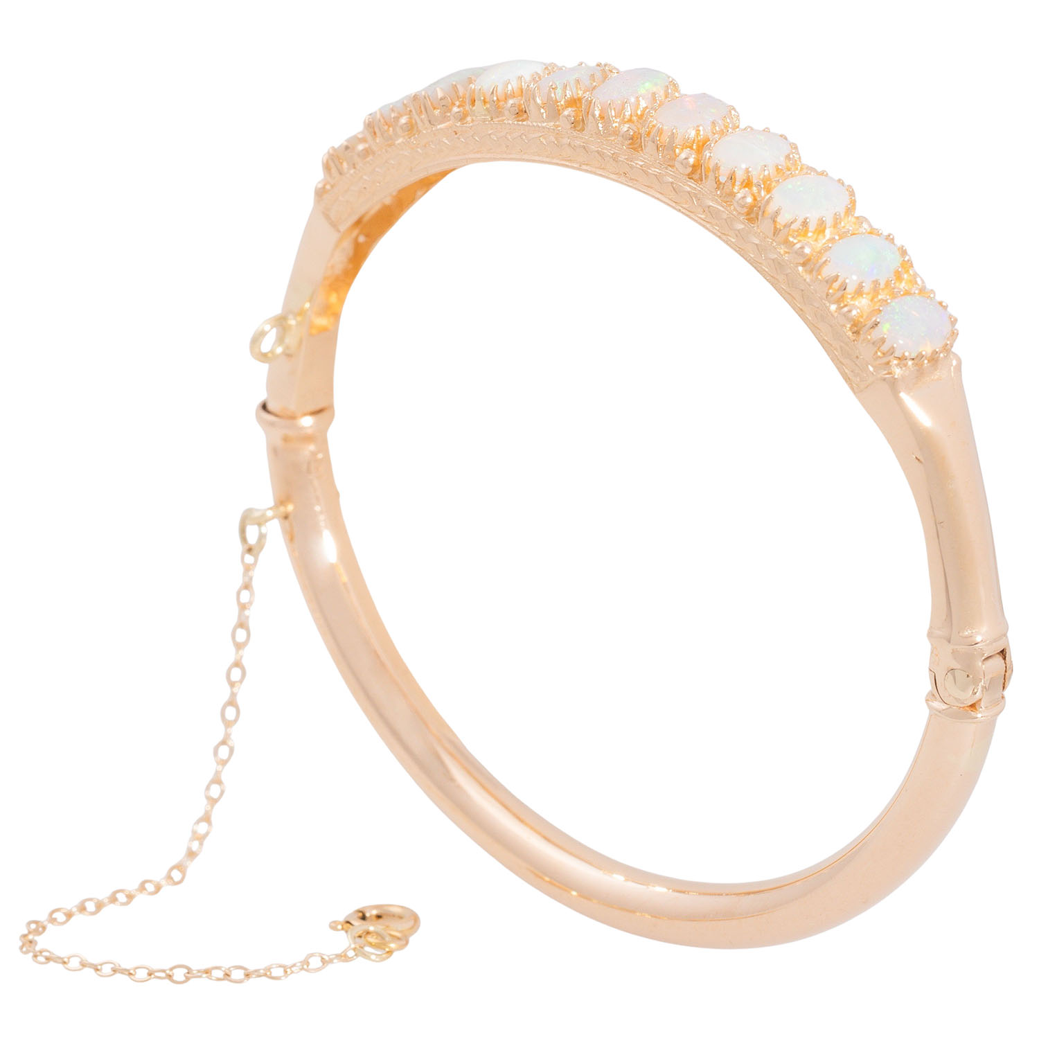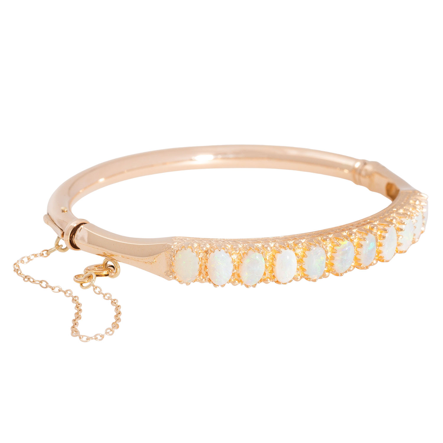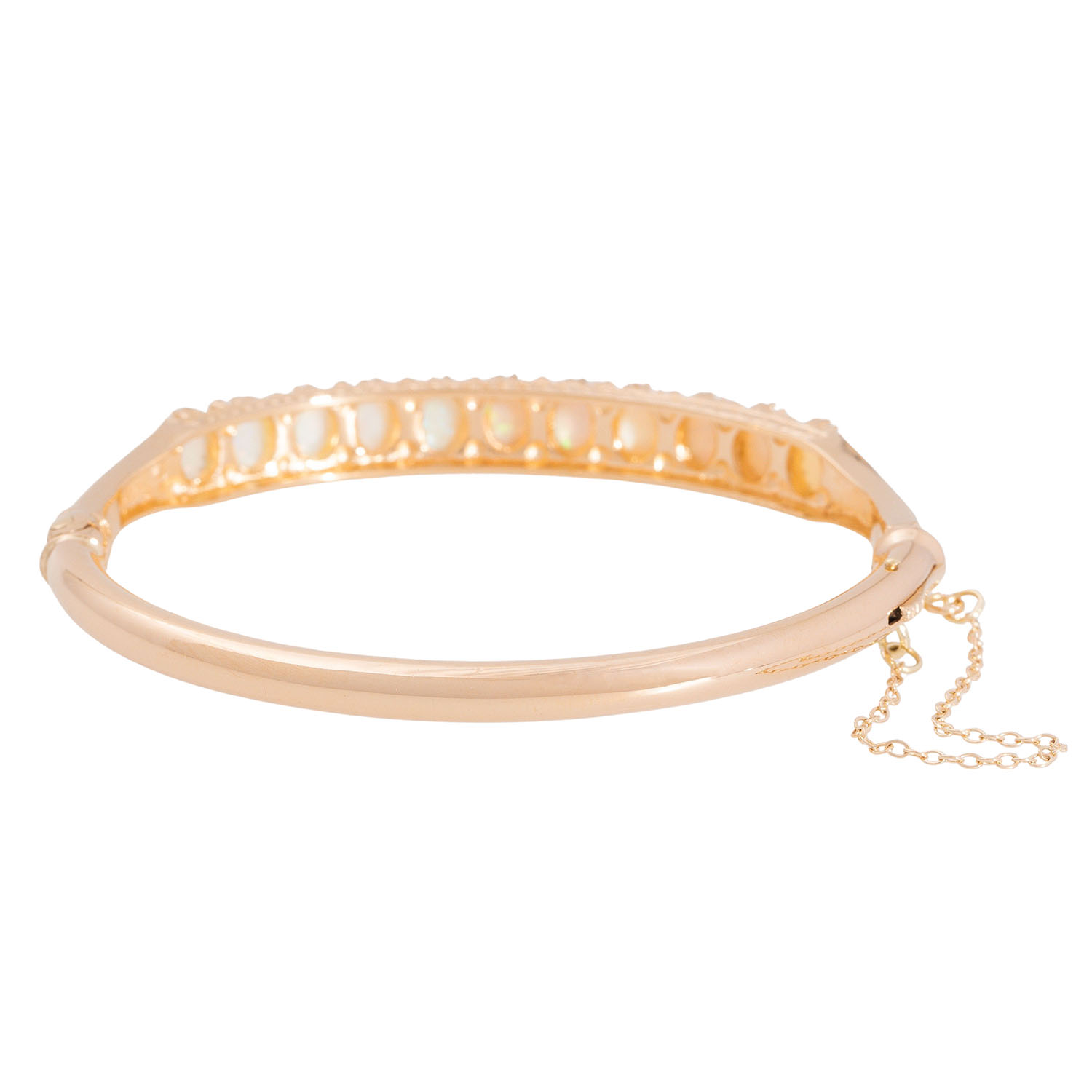 Armreif mit 2 weißen Opalcabochons und 5 Brillanten,