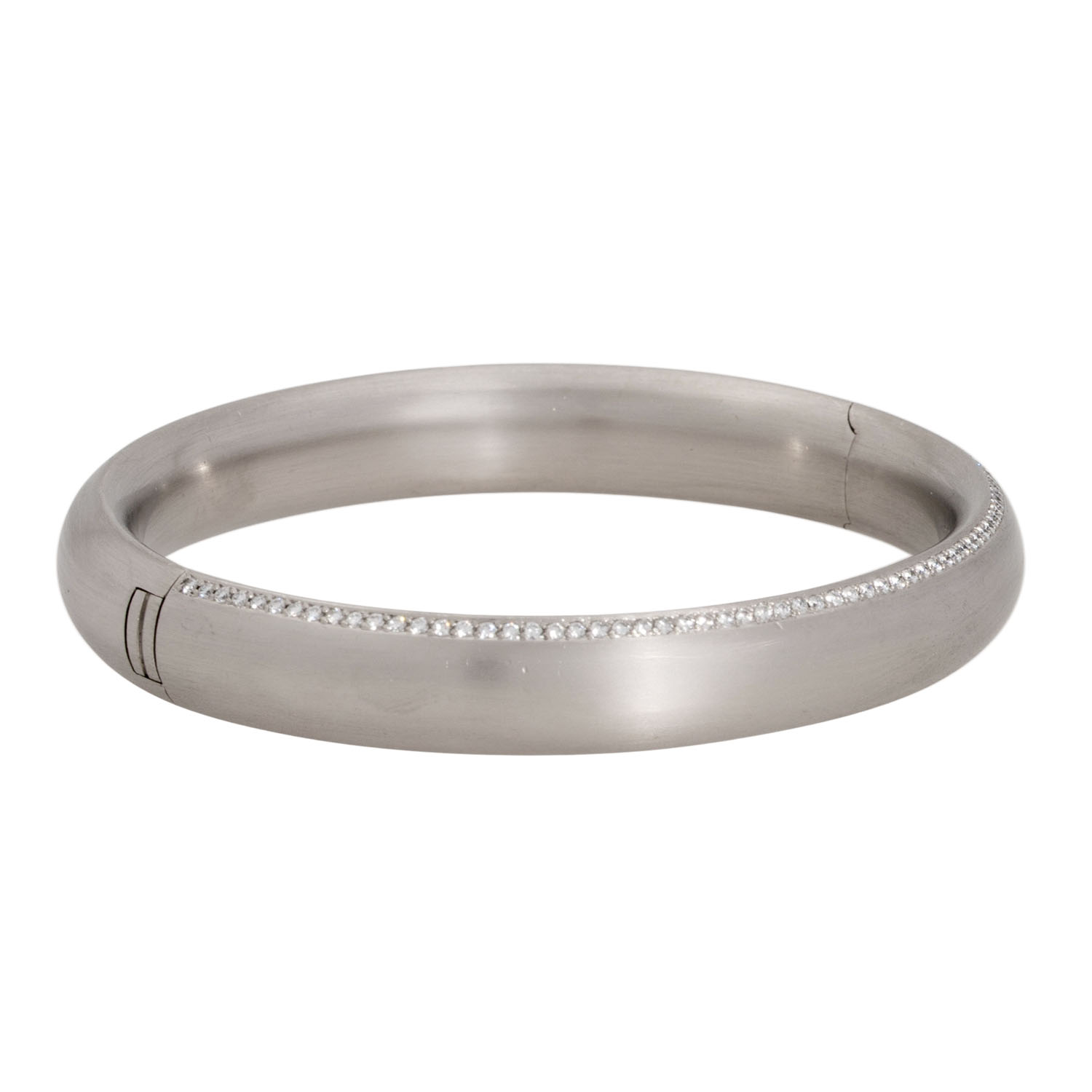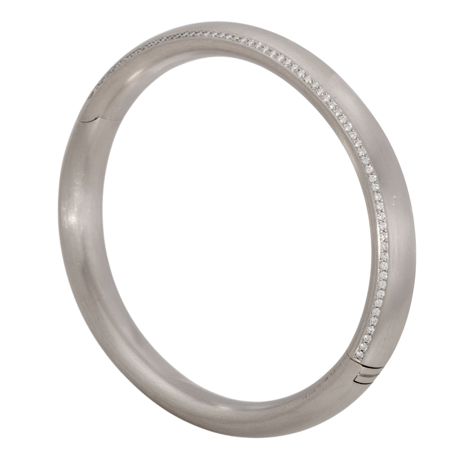 ges. 0,53 ct (graviert), FW(F-G)/LR (graviert), Platin 950, 69,3 g, Innenumfang ca. 17 cm, B: 10 mm, Ende 20. Jh., minimale Tragespuren.