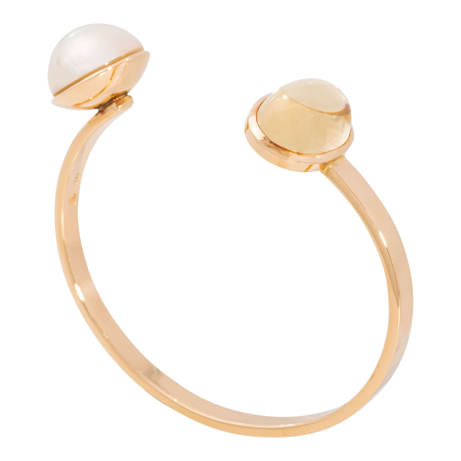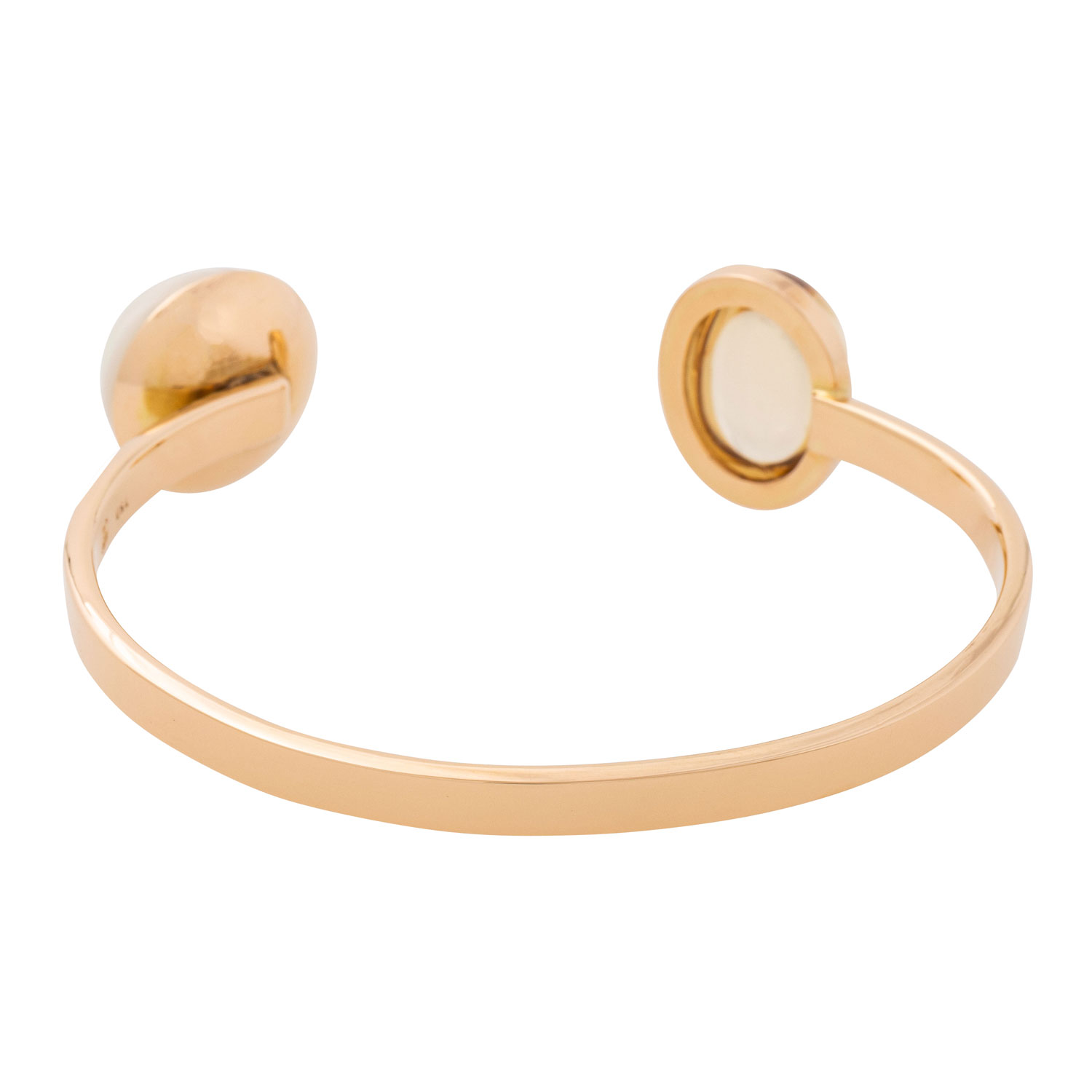Armreif mit 2 weißen Opalcabochons und 5 Brillanten,