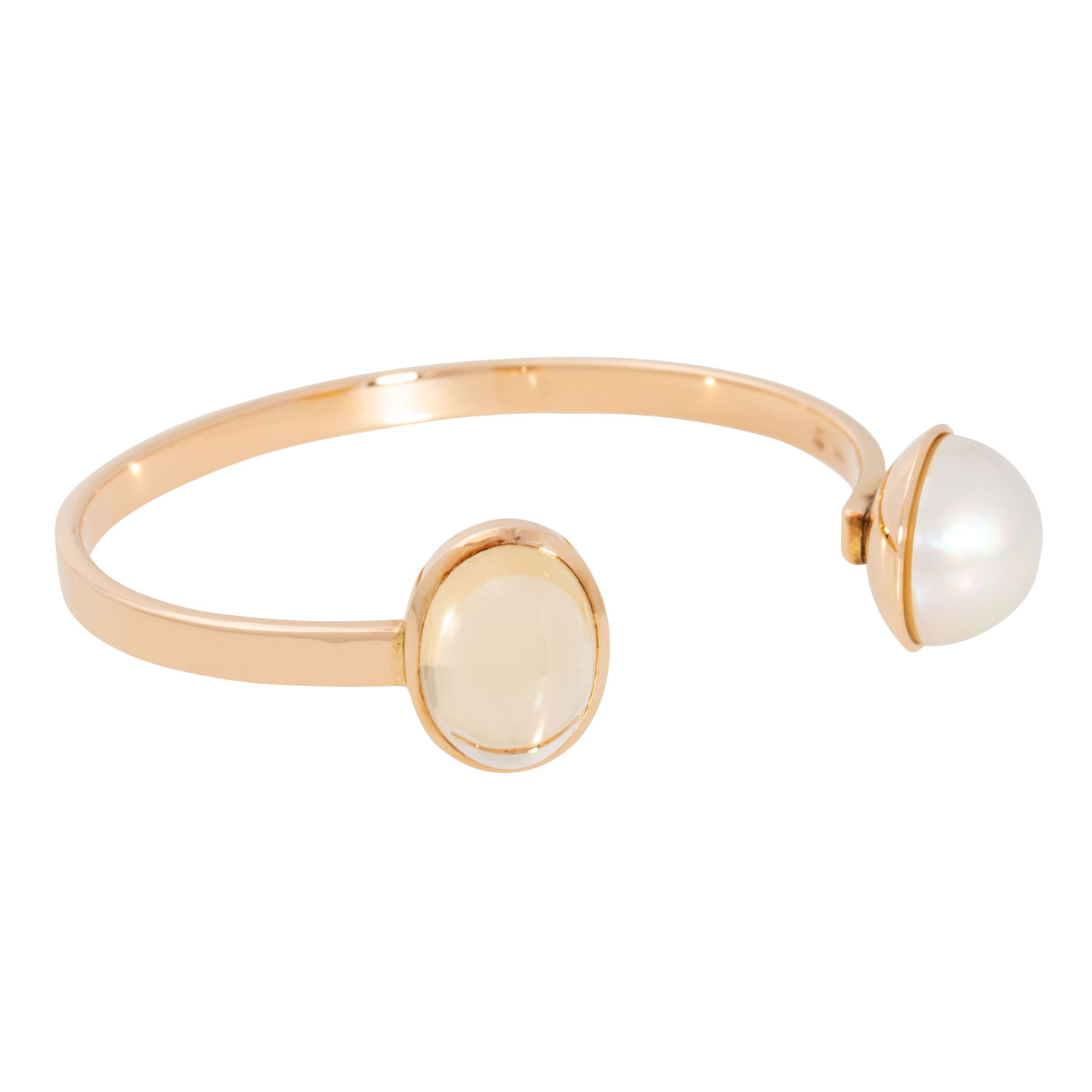 und Mabeperle ca. 16 mm, RSG 18K, 36,6 gr, Innenumfang ca. 19 cm, 21. Jh., neuwertiger Zustand, Herstellermarke Christina Rasmussen. (10)