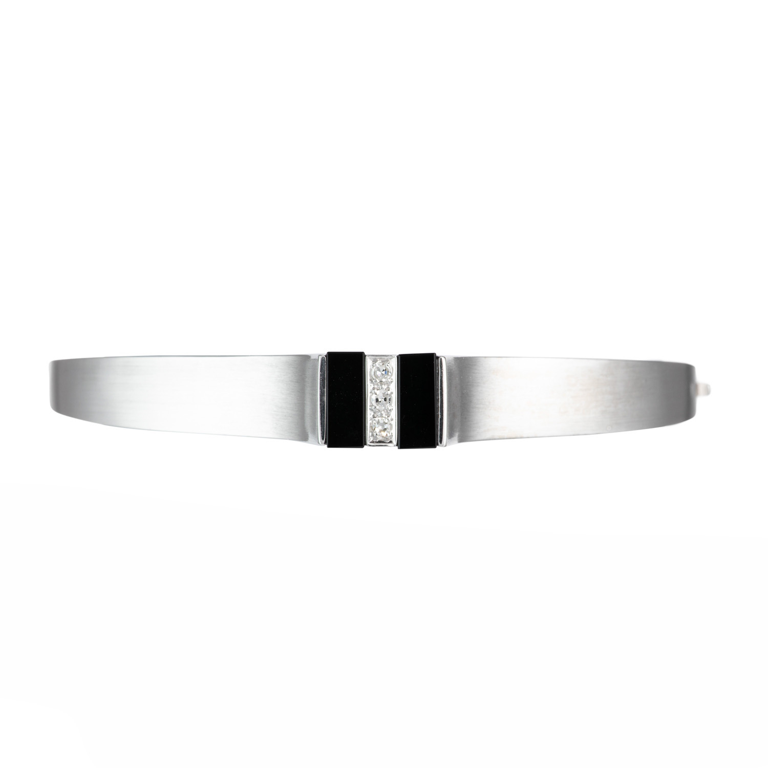 Armreif mit Onyxeinlage, 3 Achtkant-Diamanten.