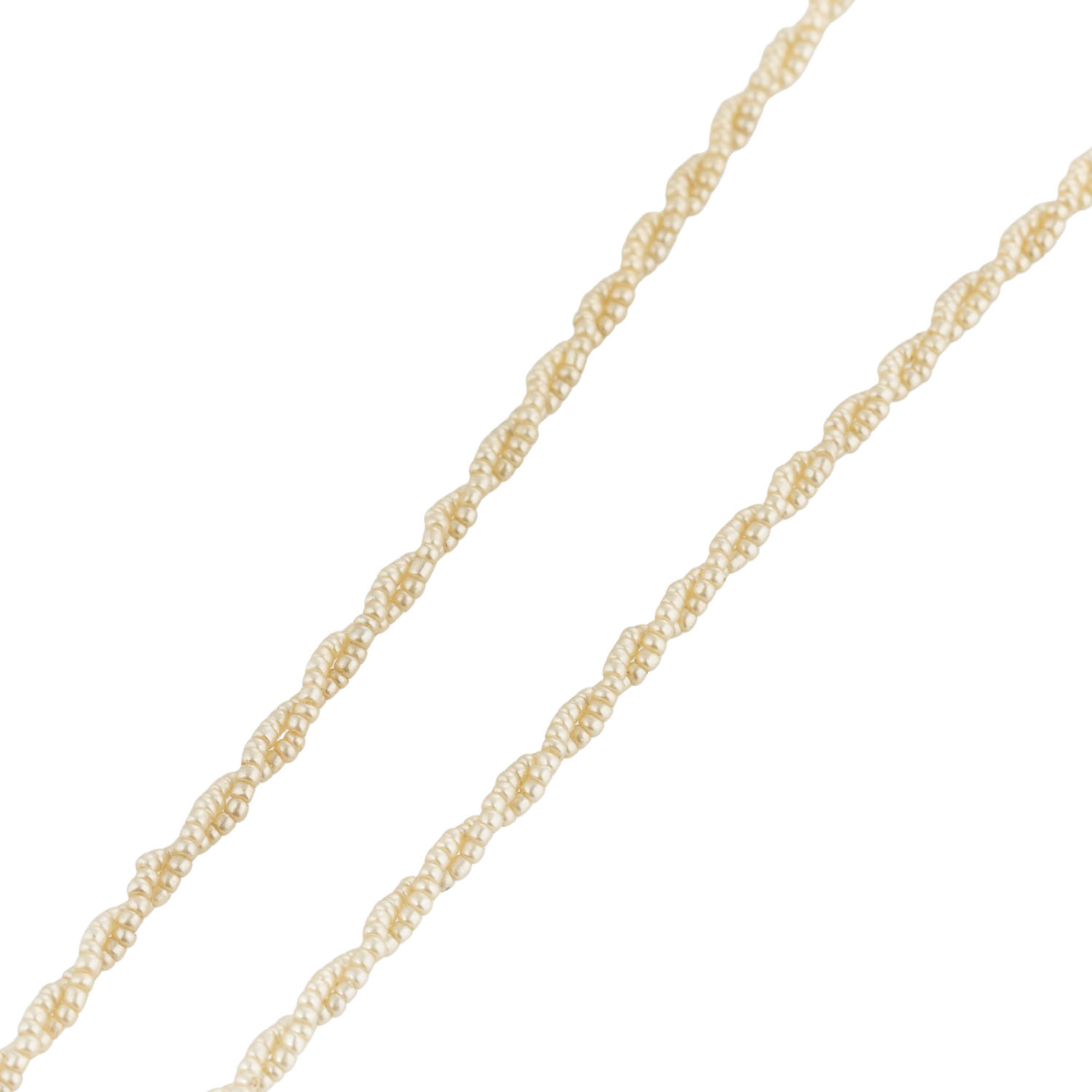 31,5 x 33,6 mm, wohl Brasilien, umgeben von 120 Diamanten im Alt- und Rosenschliff von zus. ca. 0,90 ct, H-I/VSI-SI mittlerer Farbe und Reinheit, GG 18K, schauseitig platiniert, um 1910, an einer feinen Kette, 2reihig, Glasperlen, 50,2 g, L: 66 cm, mit Gebrauchsspuren. Juwelierzertifikat und Schmucketui anbei.