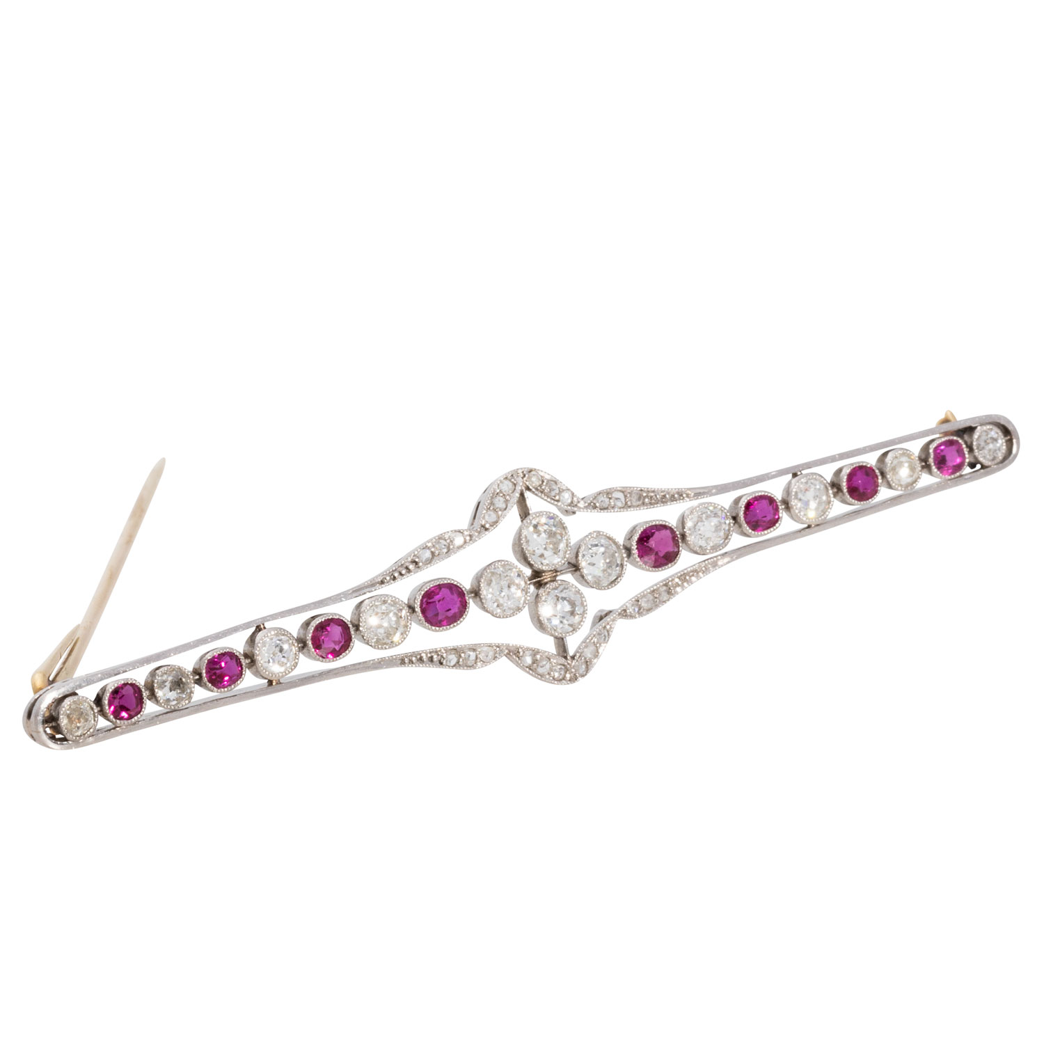 Art Déco Brosche mit Diamanten und Rubinen,
