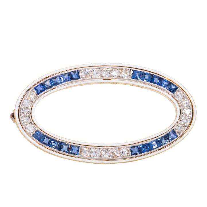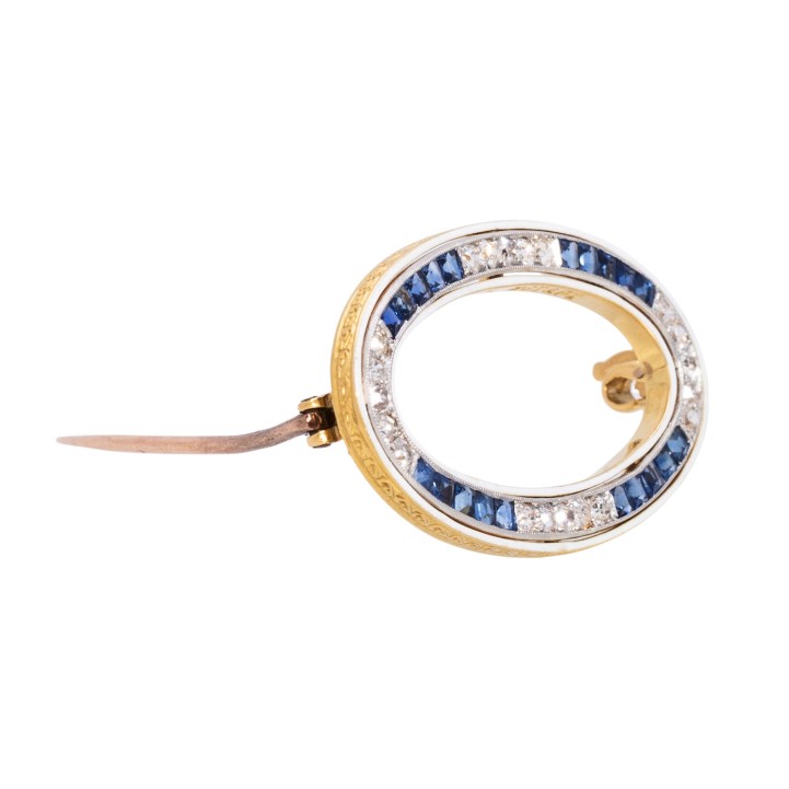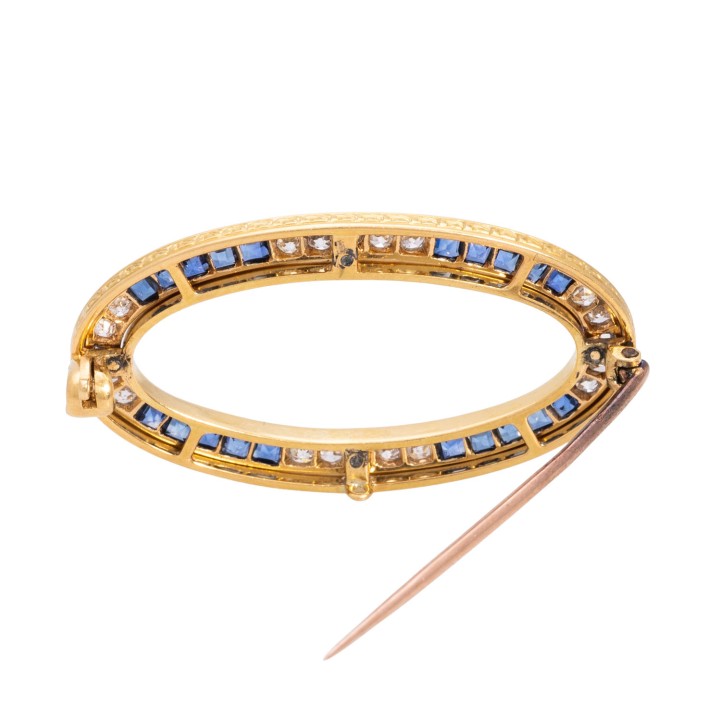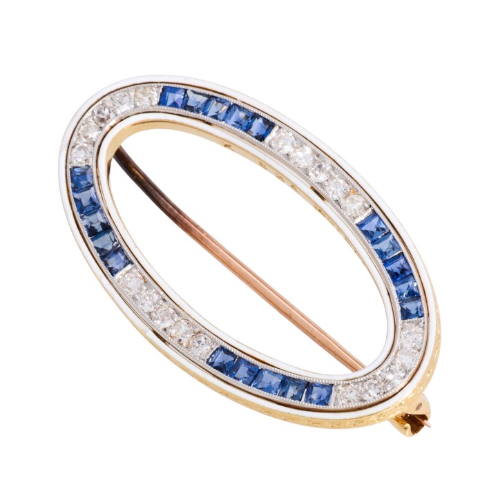 Art Déco Brosche mit Saphiren und Altschliffdiamanten
