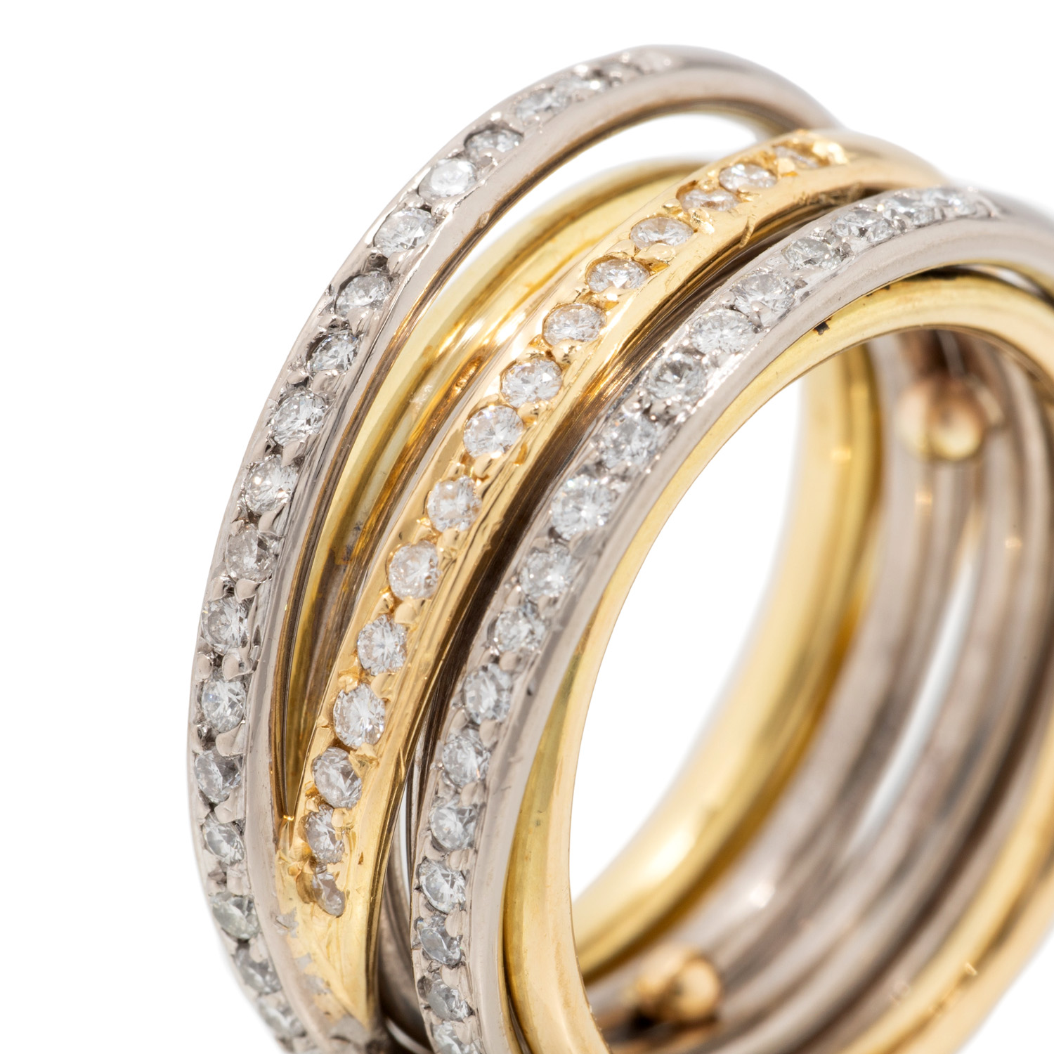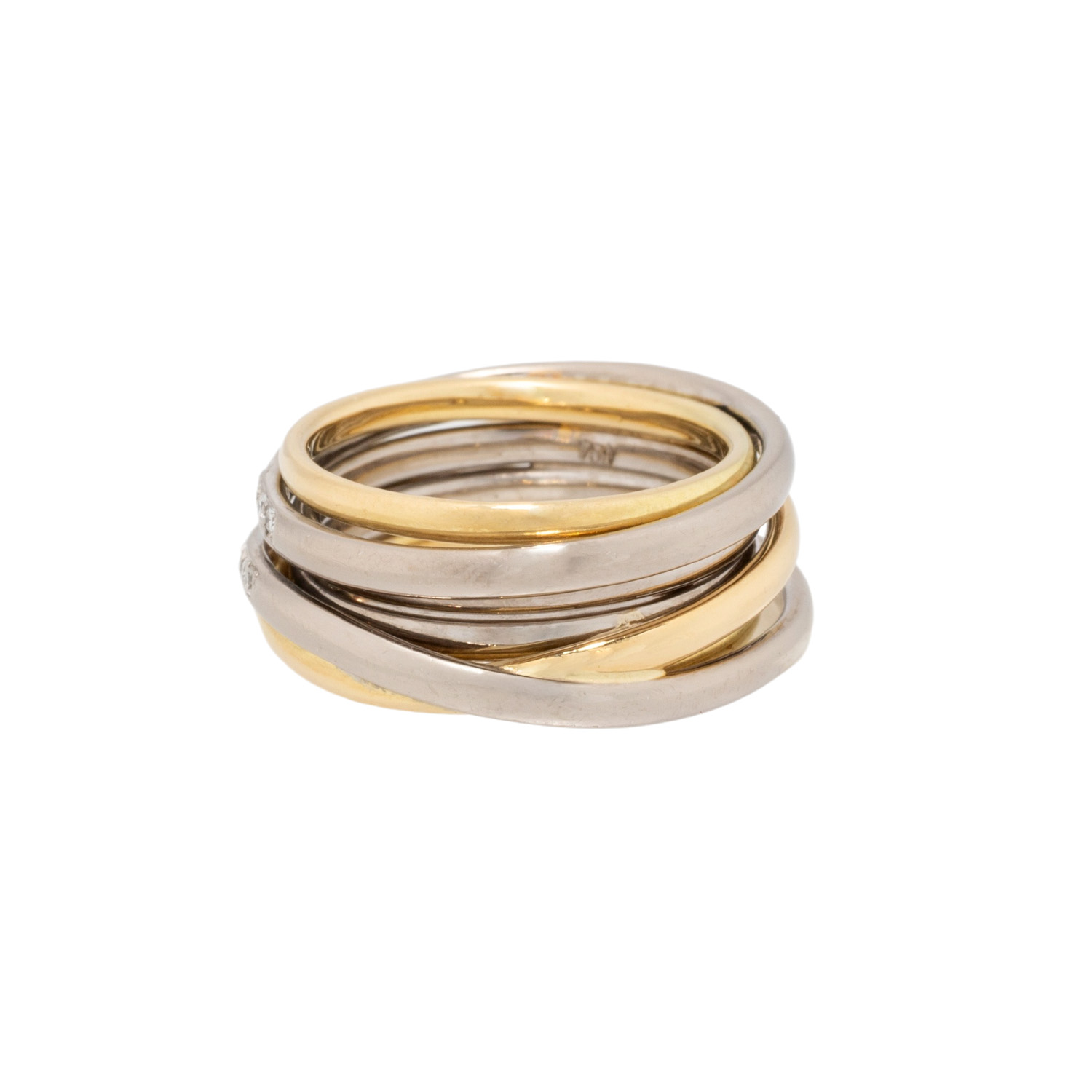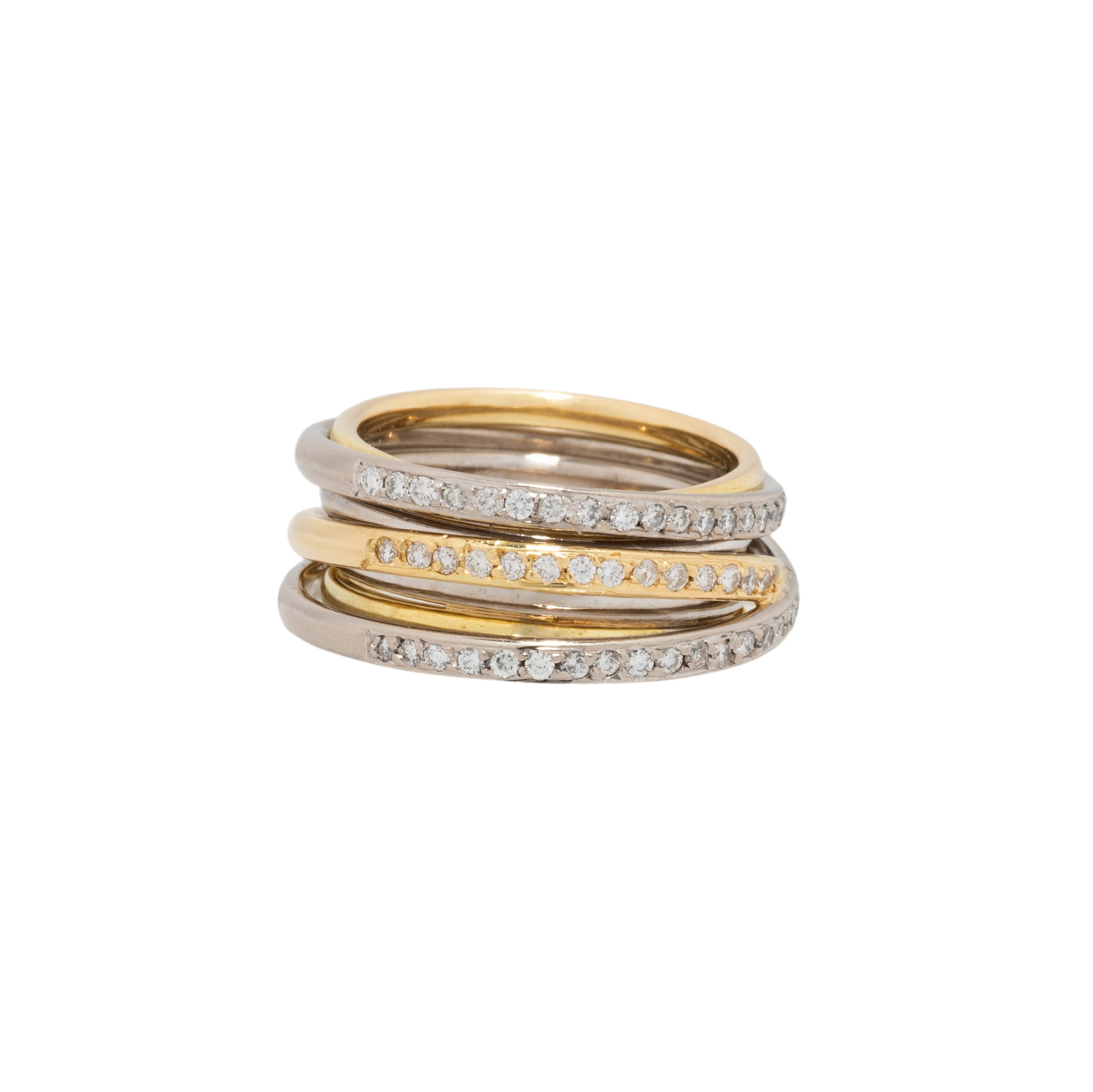 mit Brillanten von zus. ca. 0,70 ct, gute Farbe u. Reinheit, GG/WG 18K, 17,4g, RW: ca. 53 - 54 (2 Verkleinerungsbeeren eingelötet), leichte Gebrauchsspuren, einzelne Brillanten leicht verkippt eingesetzt, punziert 750.