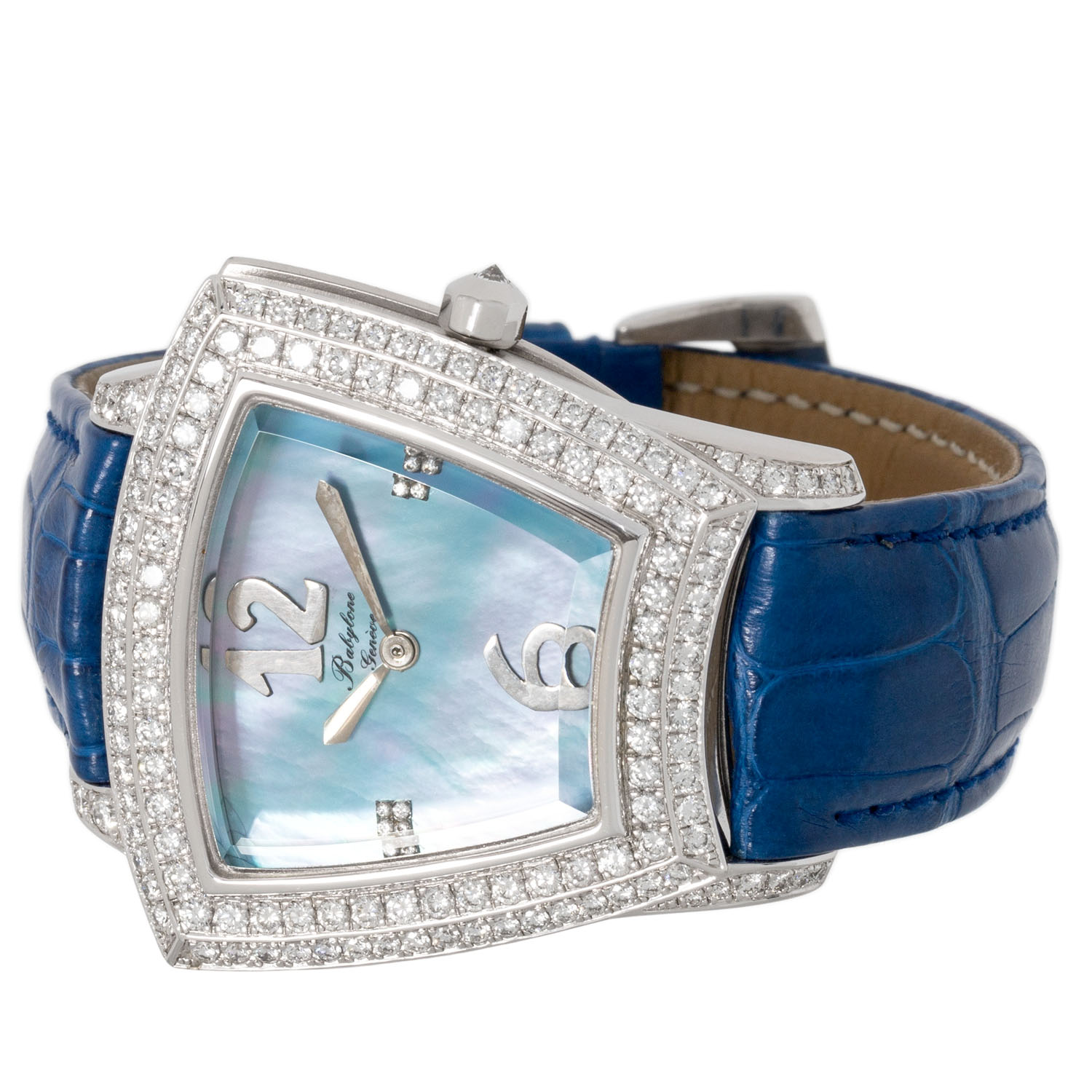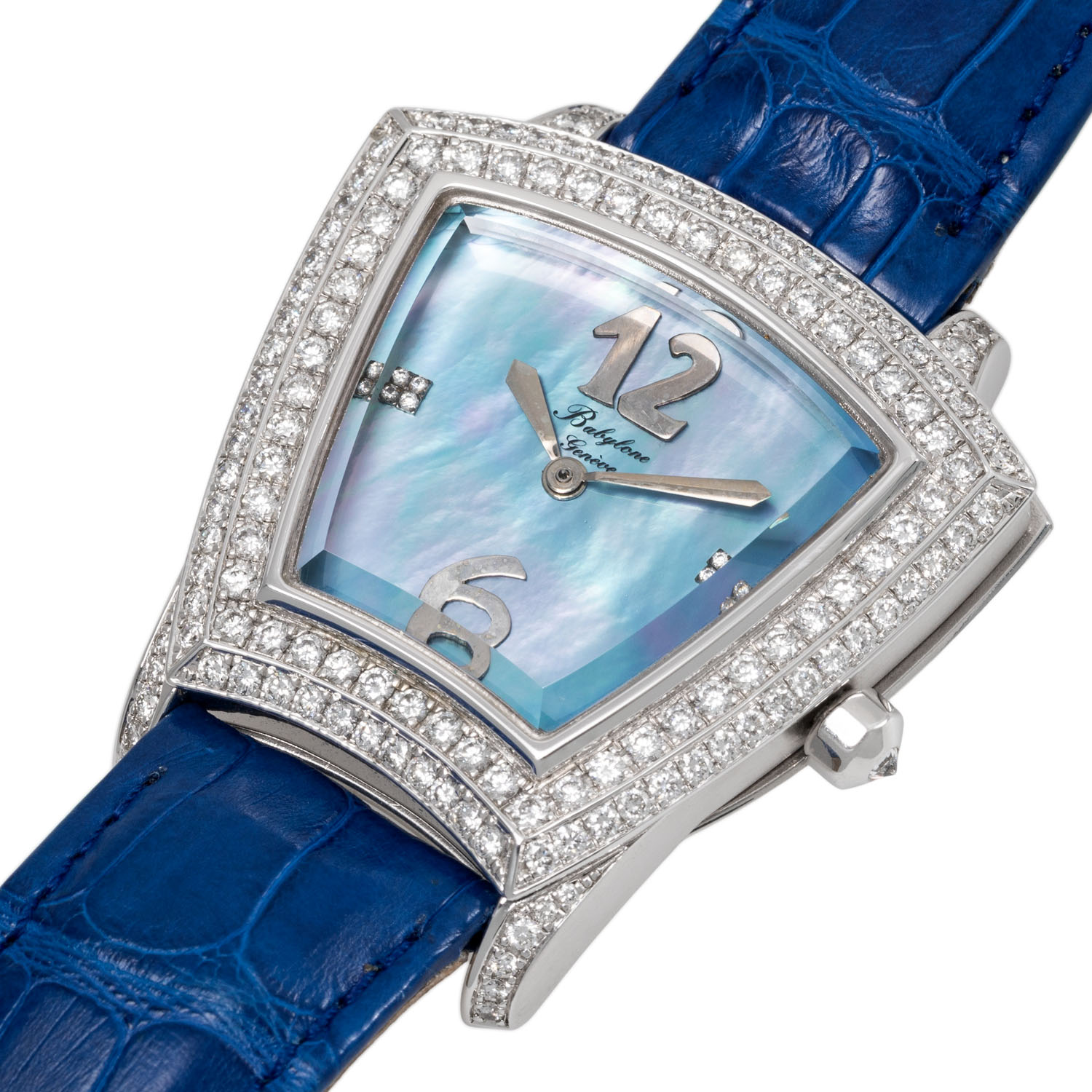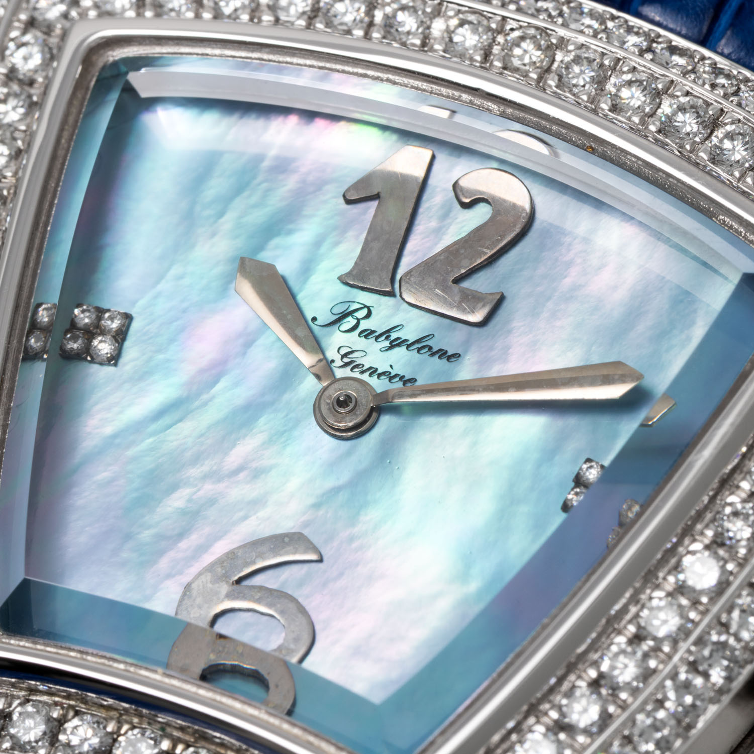 BABYLONE GENÉVE außergewöhnliche Damenuhr 'Perlmutt & Factory Diamanten'.