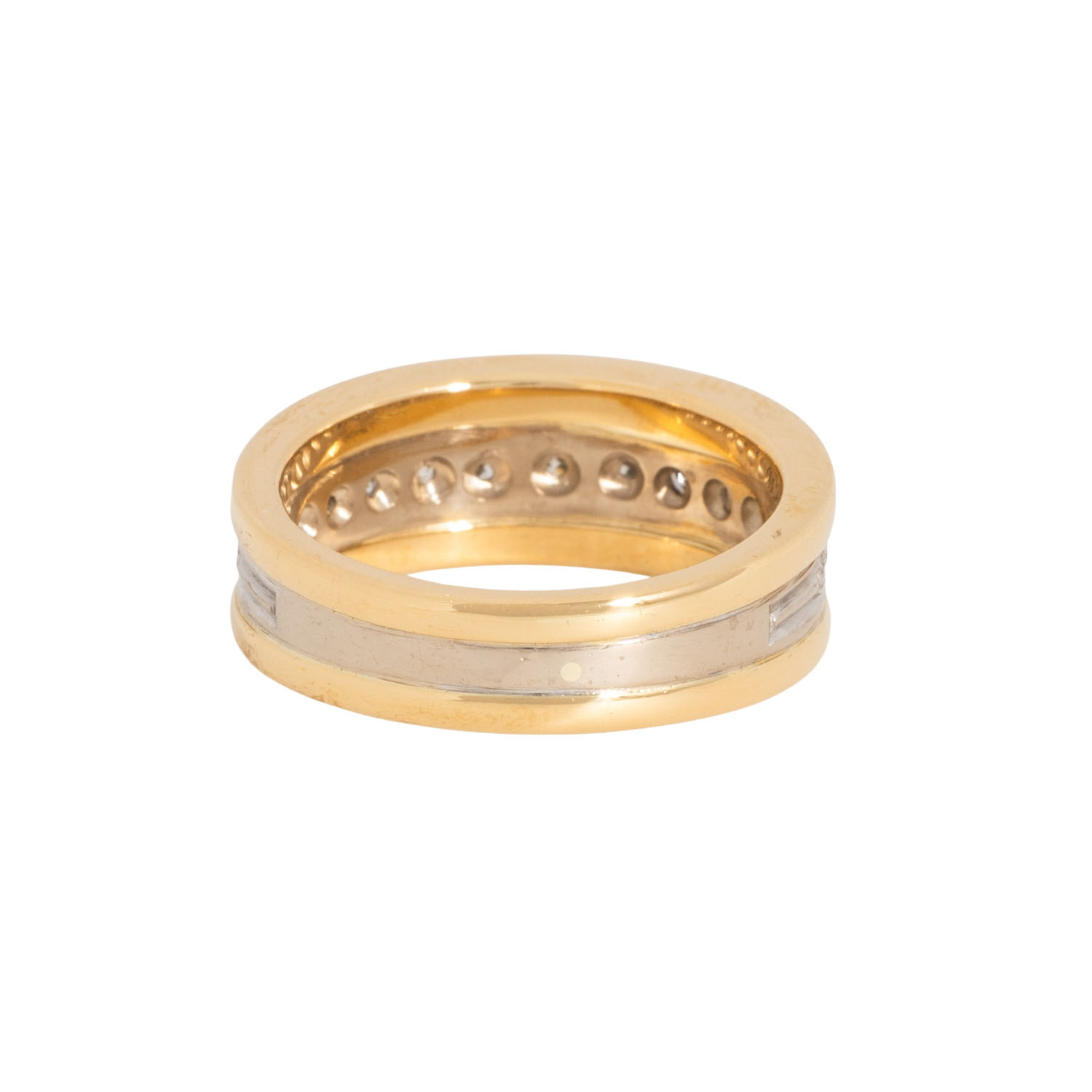 davon zentral ca. 0,09 ct, WEISS-LGW (H-J)/VS-SI, GG/WG 18K, 14,4 g, RW: 61, B: ca. 5,8 - 8,6 mm, 20./21. Jh., Tragespuren.
