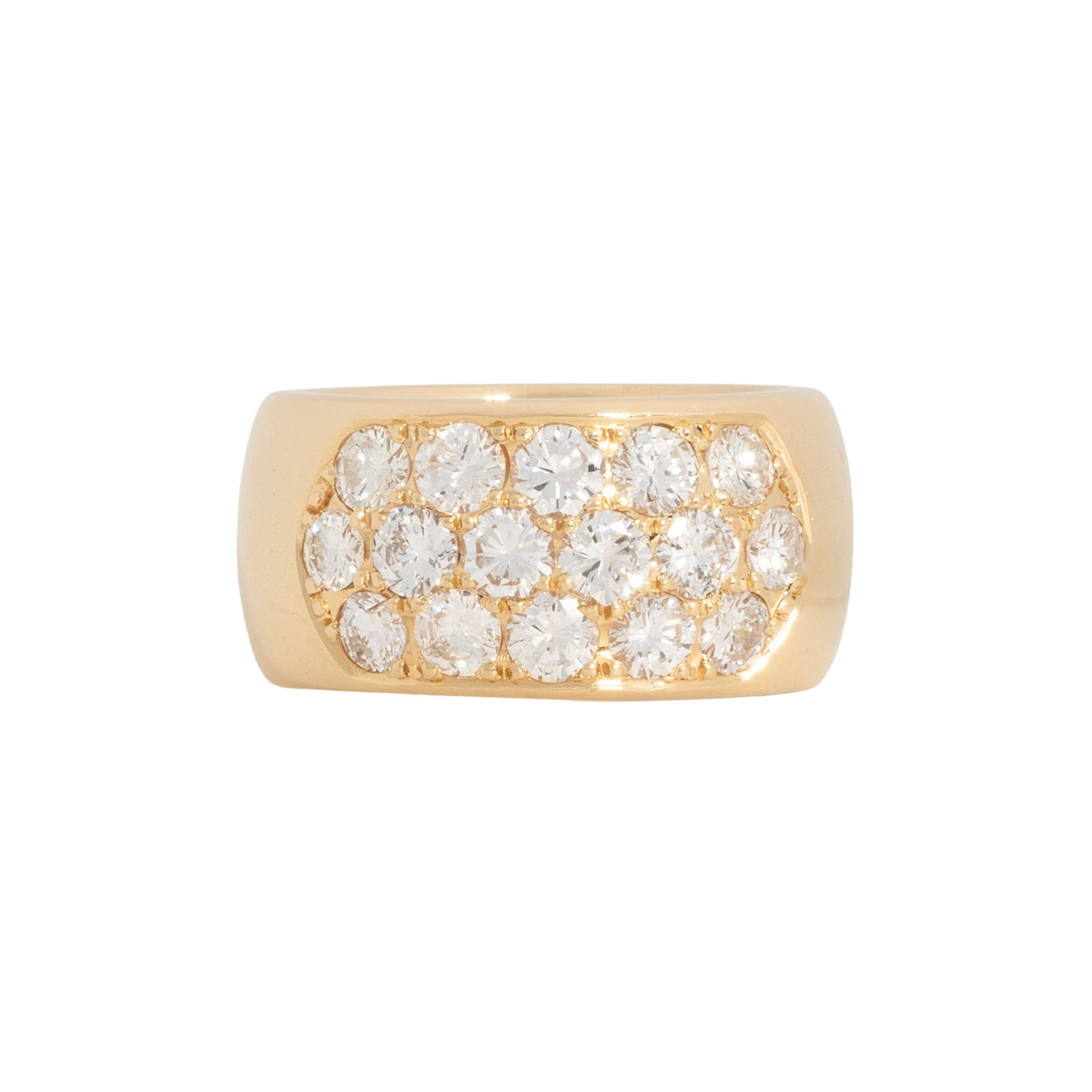 WEISS (H)/SI-P, Pavé gefasst, GG 18K, 28,8 g, RW: 55, B: ca. 11,5 mm, 21. Jh., leichte Tragespuren, mit Herstellerpunze 'WZP', Goldschmiedearbeit.