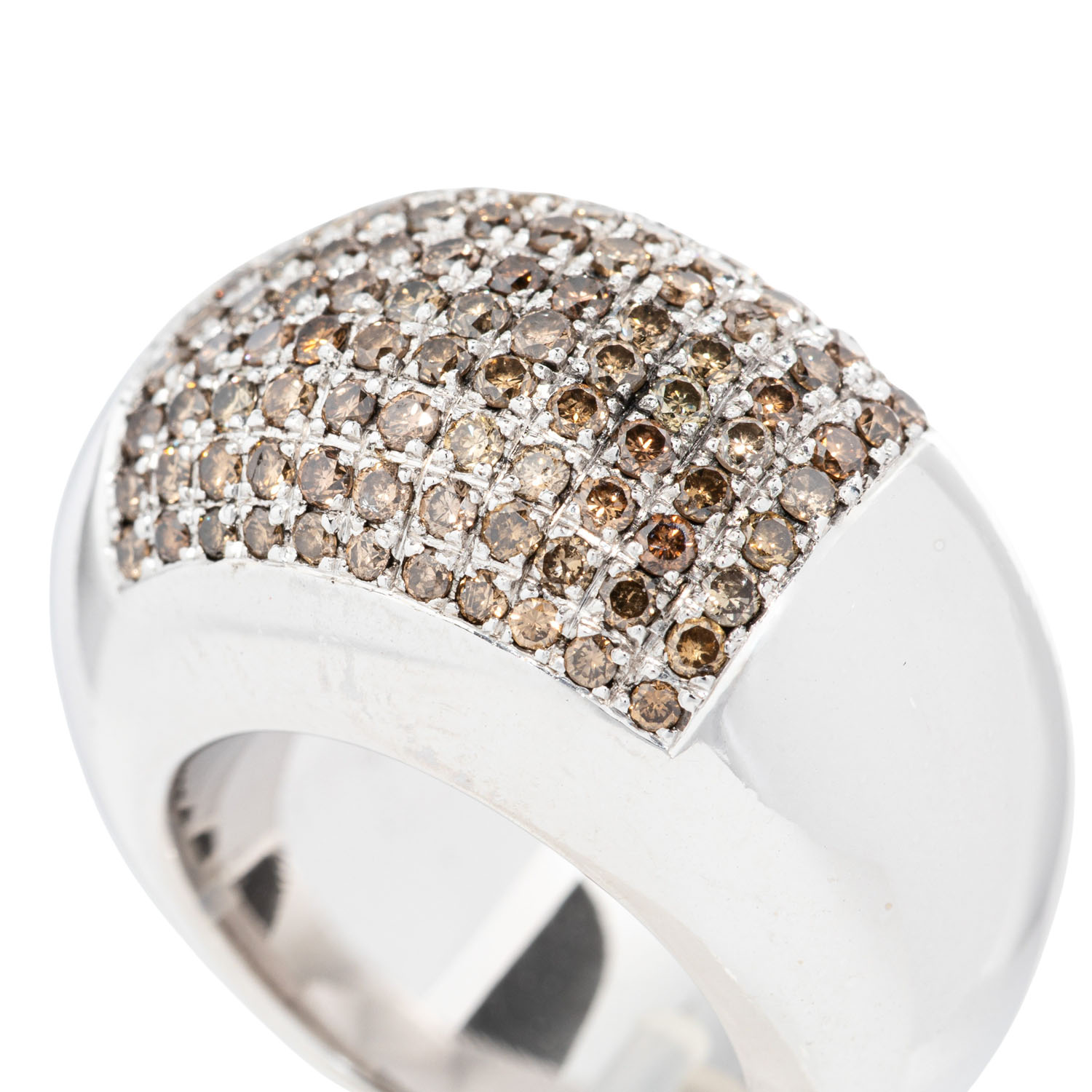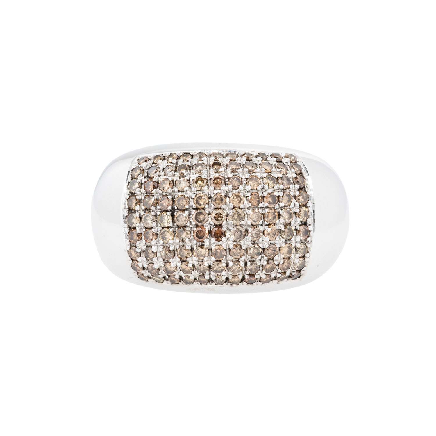zus. ca. 1,26 ct, fancy brown (C1-C6)/SI-P, Pavé gefasst, WG 14K, 23,8 g, RW: 53, B: ca. 10 - 16,3 mm, 21. Jh., leichte Tragespuren, 1 Stein anbei.