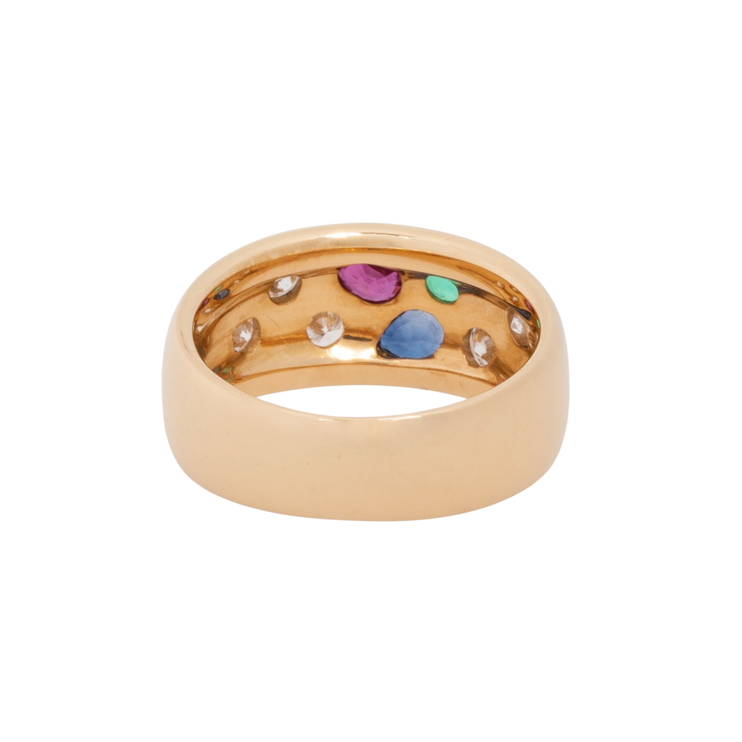 Ring/Bandring mit 5 Rubinen, 5 Smaragden und 12 Brillanten,