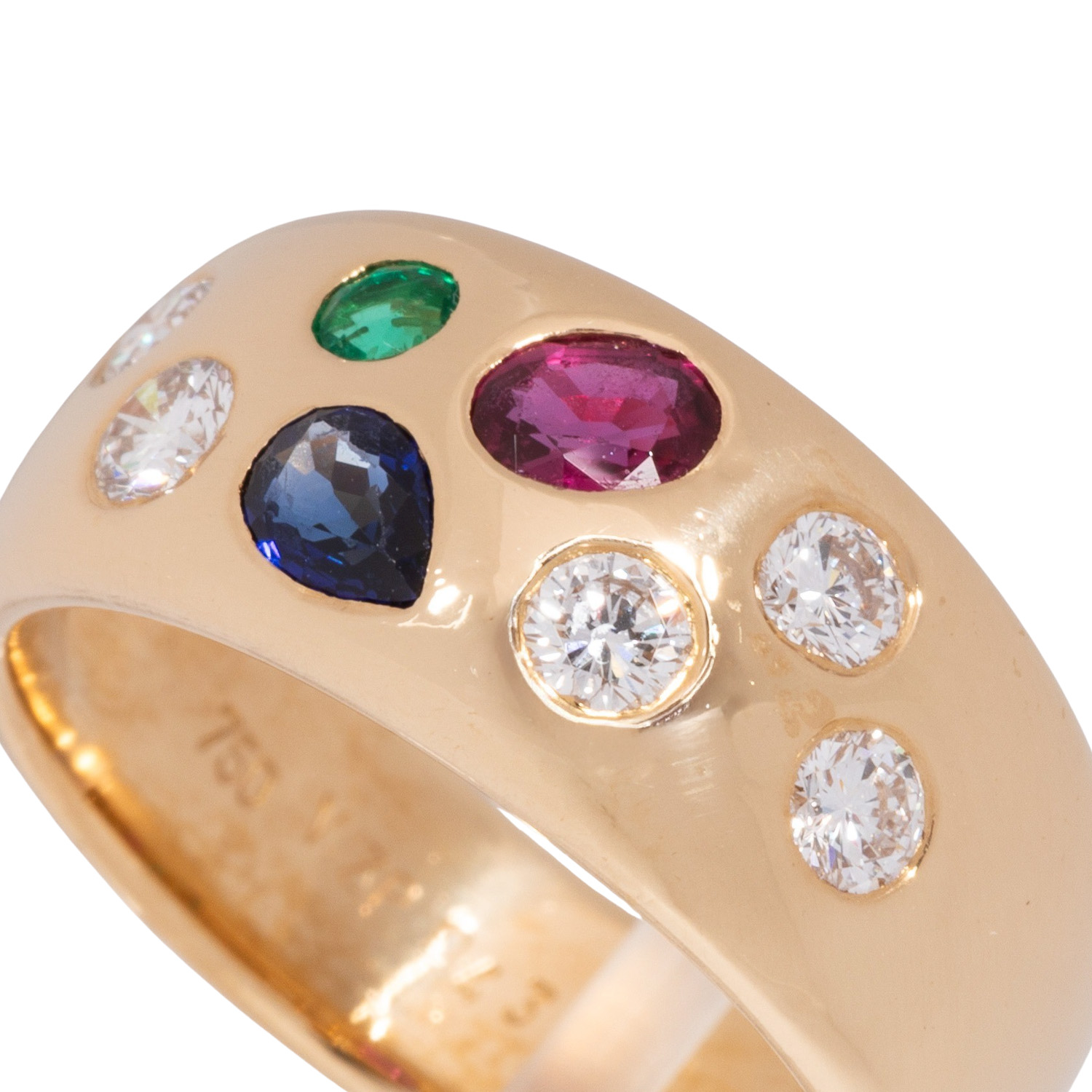 Bandring mit Saphir, Smaragd, Rubin und Brillanten,