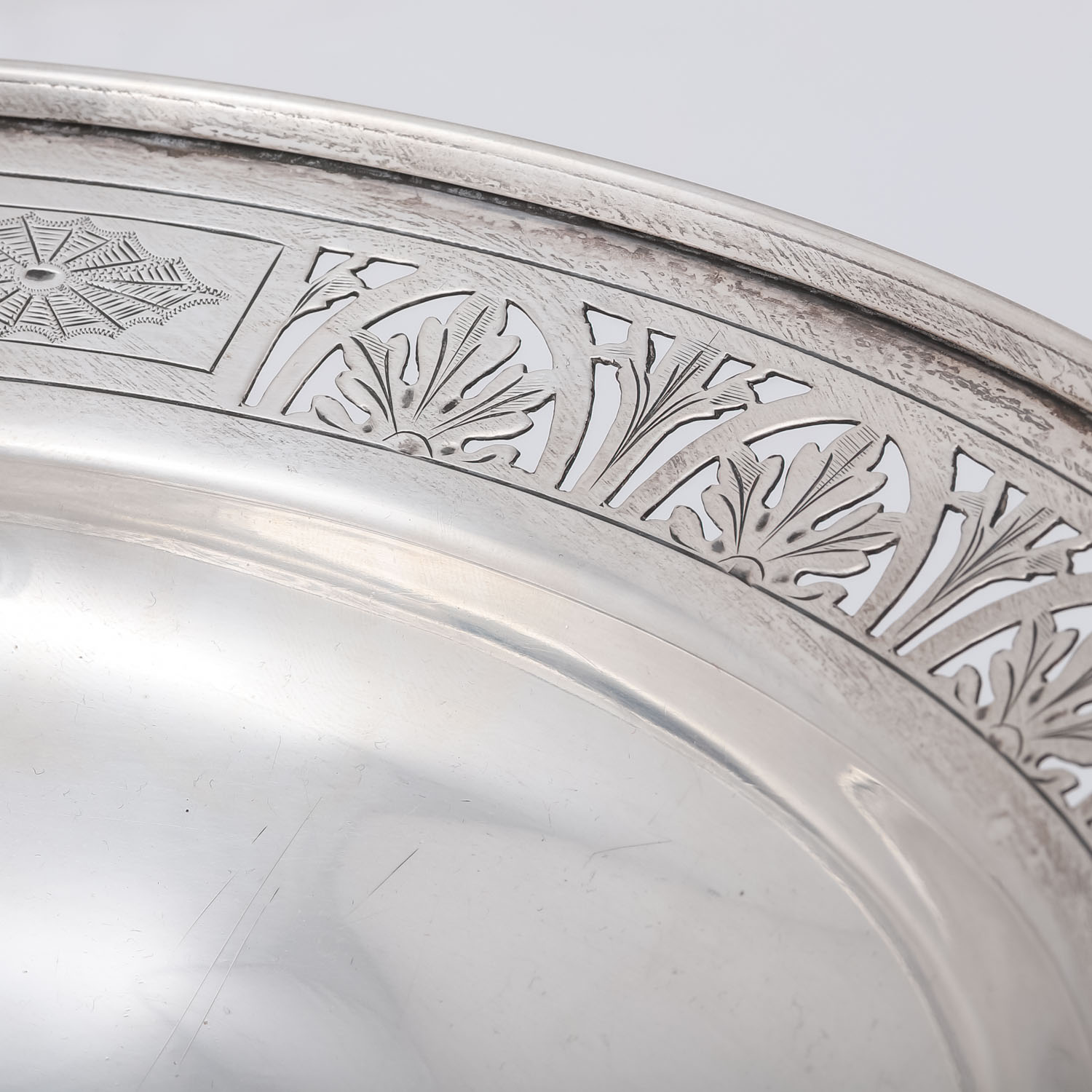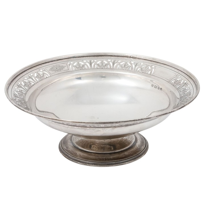 Tafelaufsatz, 925 Silber, 1927,runde Form, Randbereich mit durchbrochenem Akanthusdekor, entsprechende Punzierung an der Schalen Innenseite. HxD: 9,5/25,5 cm, Gewicht: 508 g. Schöner Erhalt.
