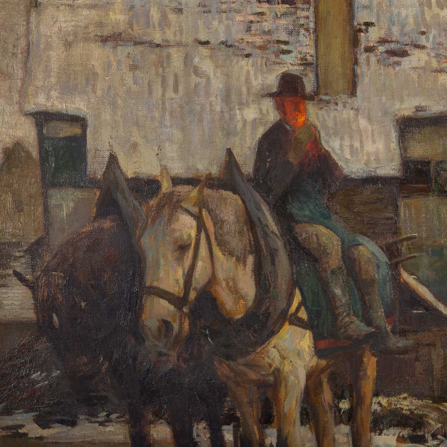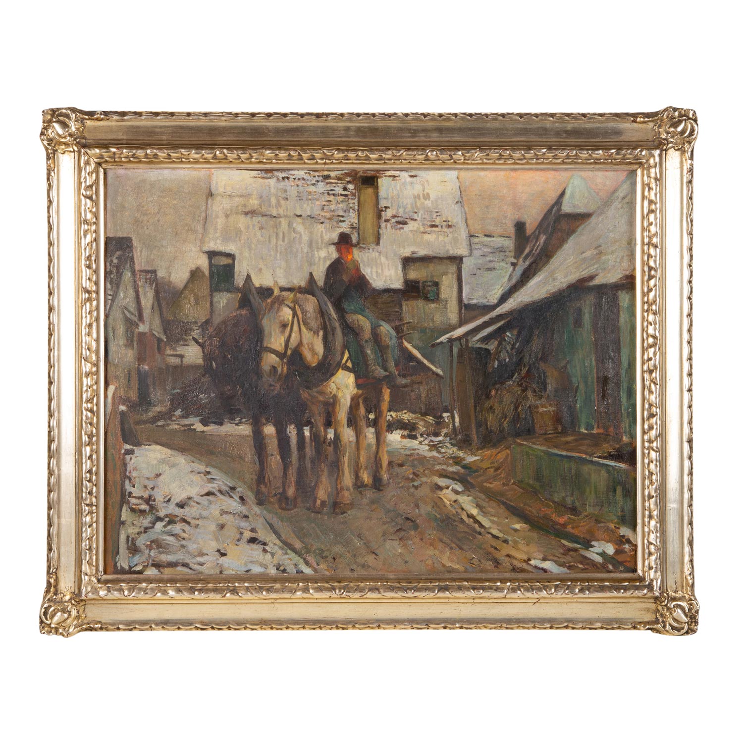 BAUER, LEO (1872-1960), 'Bauer zu Pferde in verschneitem Dorf',