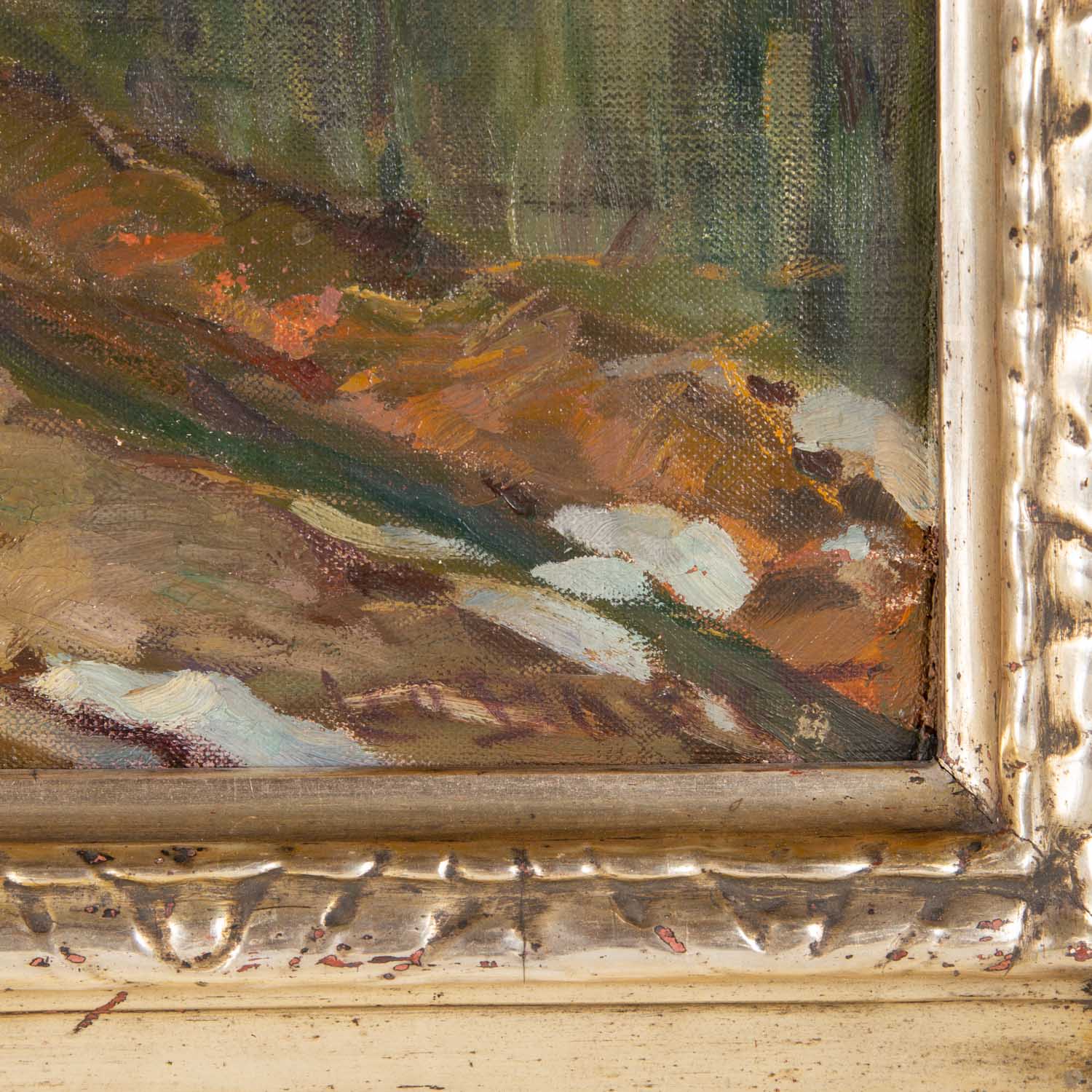 u.re. signiert, Öl/Leinwand, HxB: ca. 63x83 cm (81x101 cm mit Rahmen). Alters- und Beriebspuren, Lw. part. minim. gewölbt, wenige kleine Farbabplatzer. Mit Rahmen (Altersspuren). PROVENIENZ: ursprünglich bei Leo Bauer erworben, verso Eigneretikett.