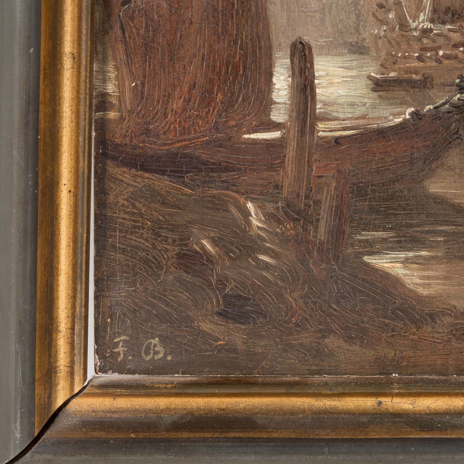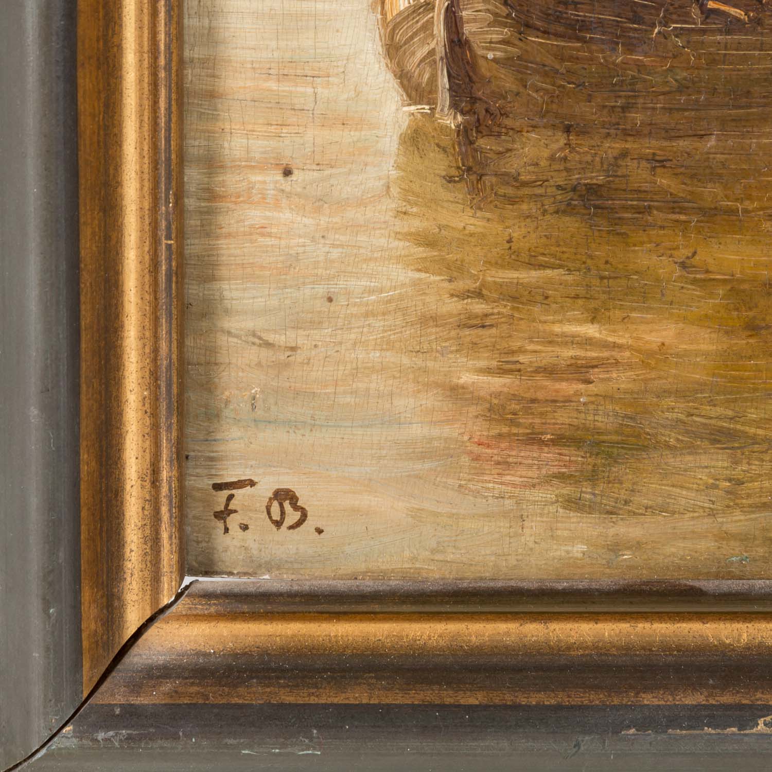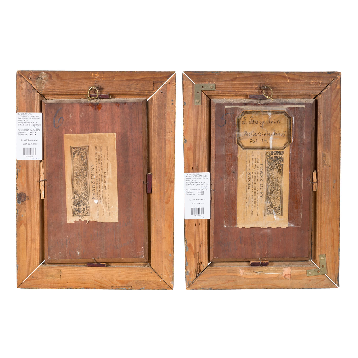 je u. li. monogrammiert 'F. B.', je Öl/Holz, HxB. je ca. 28x18 cm (37x27 cm mit Rahmen). Alters- und Beriebspuren, part. Craquelé und Farbabplatzer, retuschiert. Je mit Rahmen (beschädigt und restaurierungbedürftig). JE VERSO Etikett Franz Dury, München und 1x mit handschriftl. Künstlerbezeichnung und Titel.